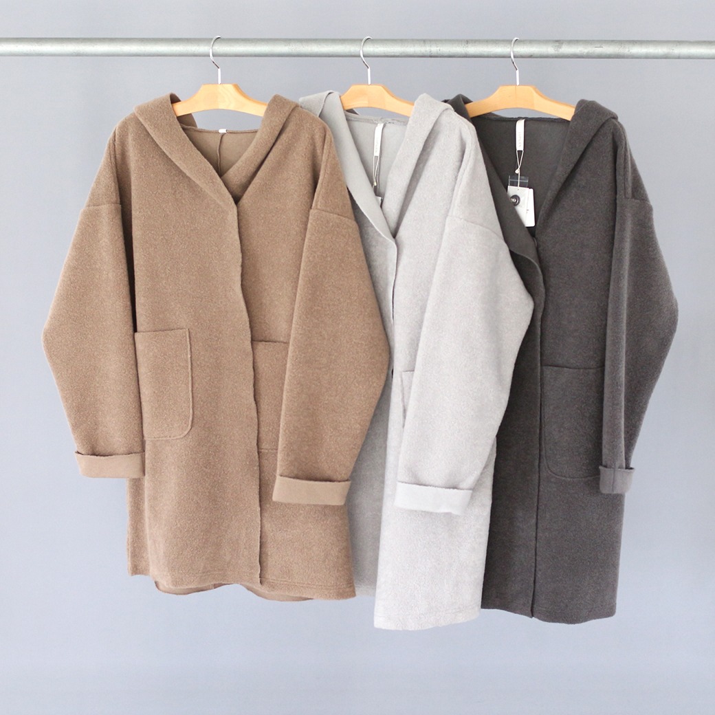 ふわっふわな優しい生地のフードコートタイプのカーディガン?コートとカーディガンの良いところをとったコーディガン? 私にはなんか説明が難しいですが、コーディネイトはとても簡単ですっ!中はそんなに気にしないで、羽織れば終わりっ!という、簡潔にコーデ可能なアイテムなのですー! 私も昔から着ているコートがこの形なの。だからオススメな羽織りですー!