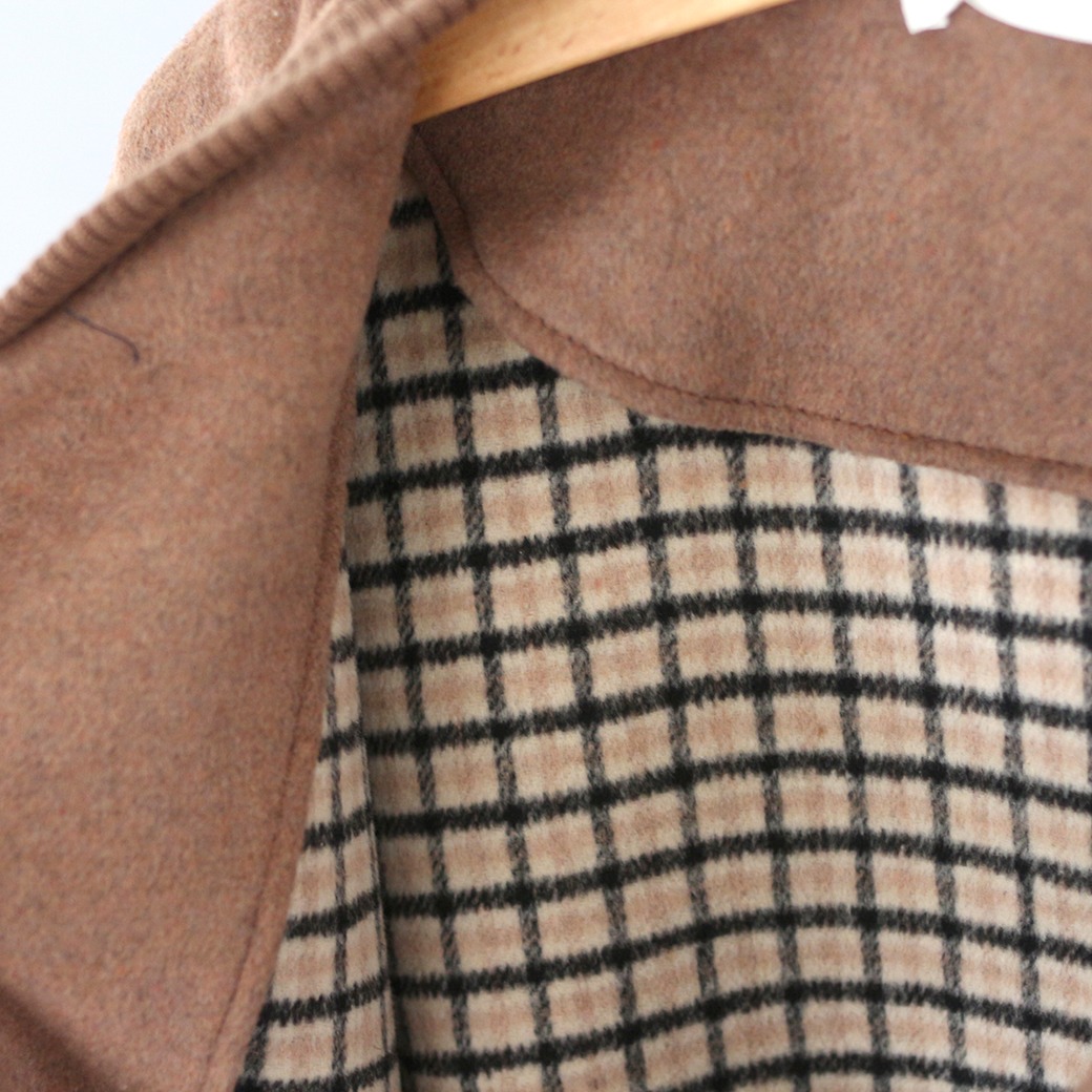 表地はフェイクメルトン生地であったかいですー!しかも裏地がチェック柄なのー(≧▽≦)!かわいいーーー!丈も長めなので冬もいいですねーー。