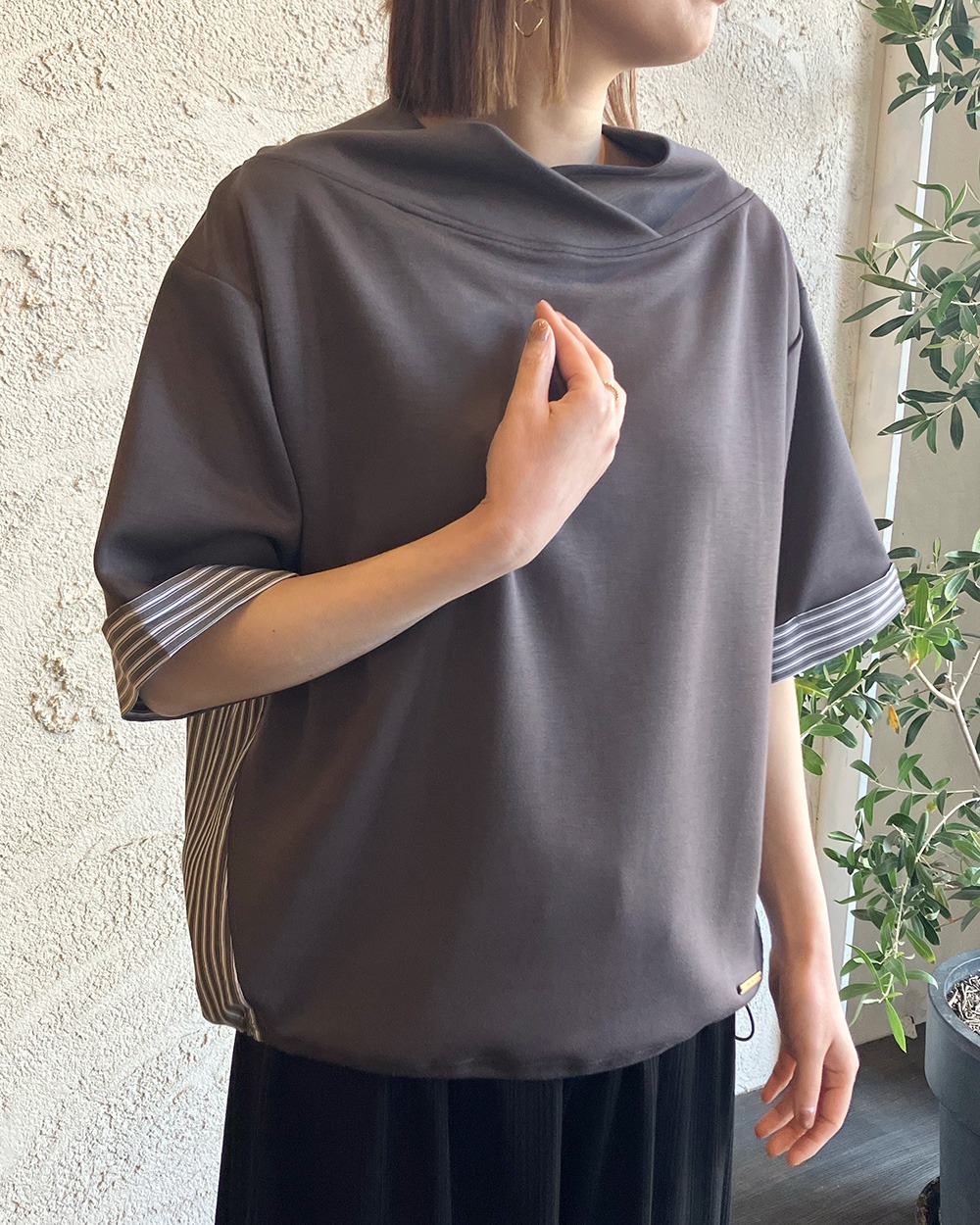 チャコールグレーは、ロールアップ袖が黒になっていて、プリントとマッチして可愛いと思いました👏