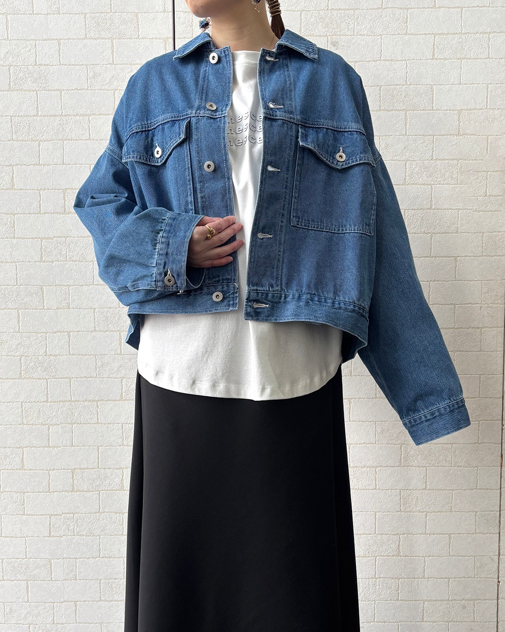 ロンTでもブラウスでもいいし、最初の方で紹介したデニムジャケットとの合わせもかわいいですよ🫶