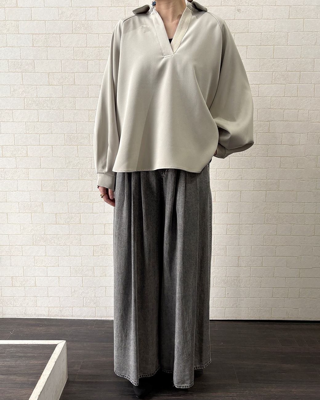 そのデニムワイドパンツに合わせたコーデです✨