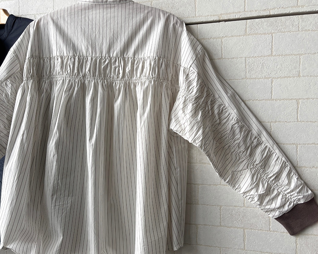 袖を広げると、後ろがラインに細かいギャザーになってます🫶✨