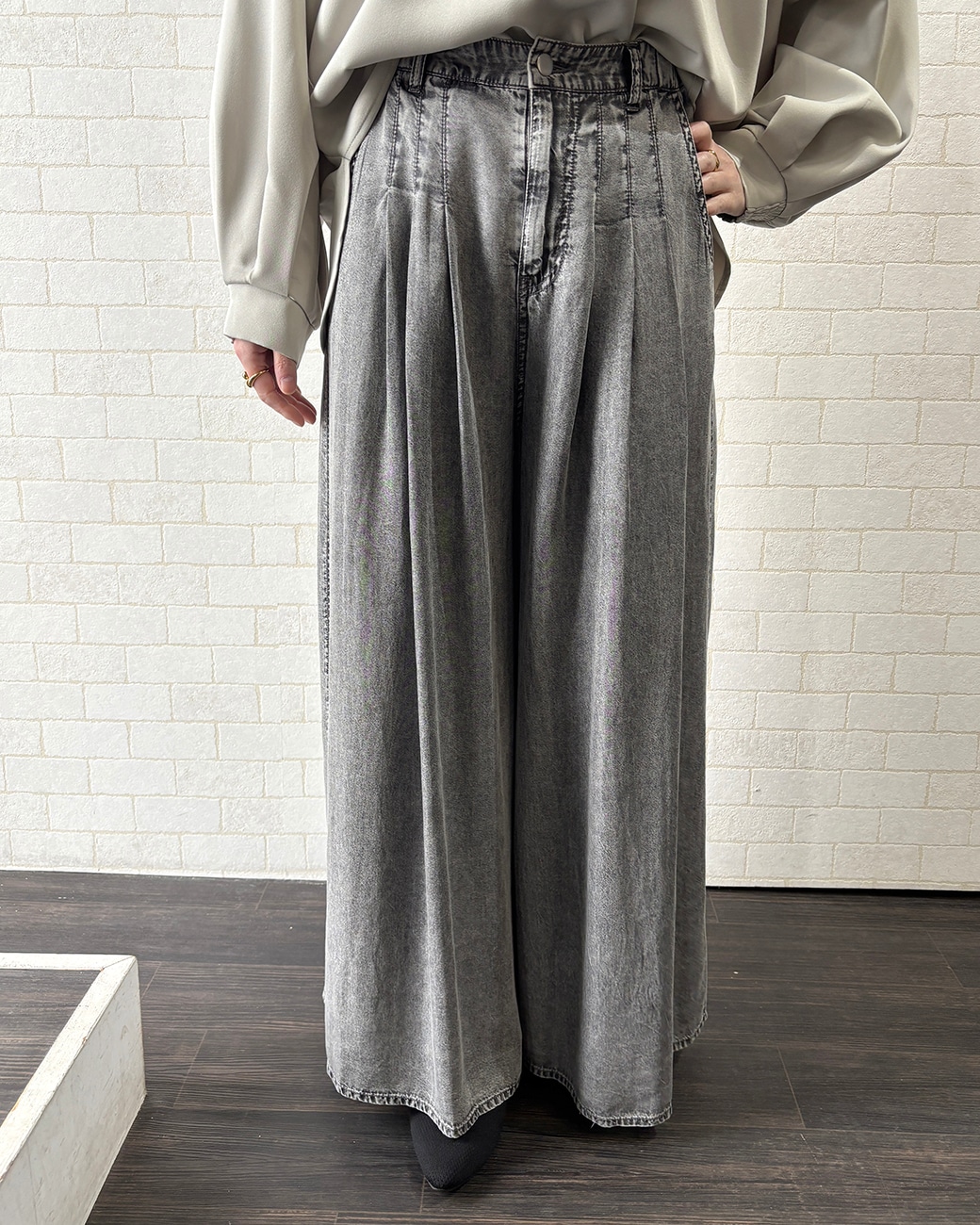続いて、こちらもずっと人気なワイドシルエットパンツで✨