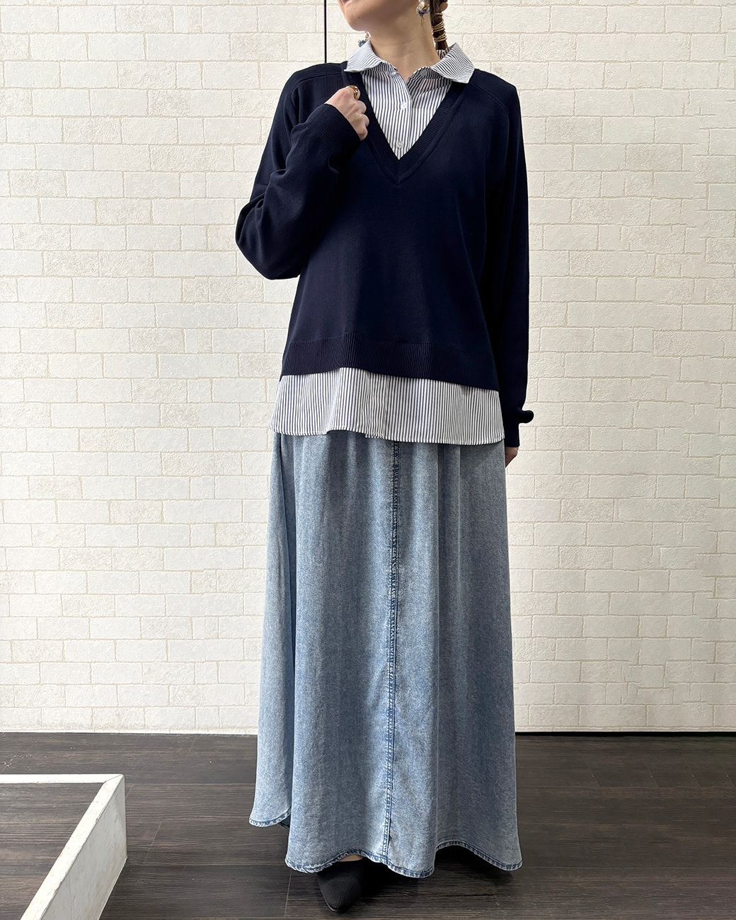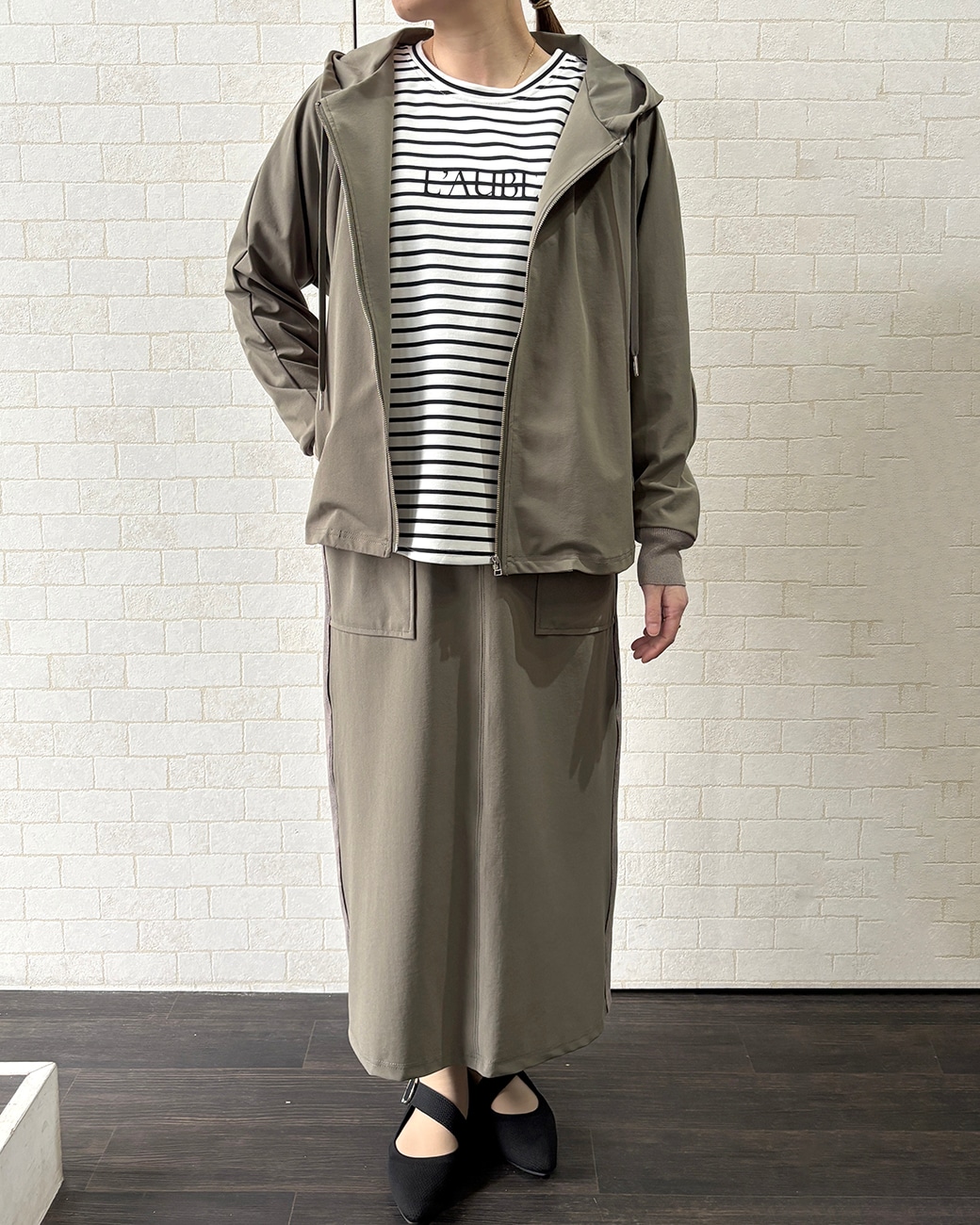 この素材ならではのきれいな落ち感で、広がりすぎない、甘くならないスカートなんです🫶
