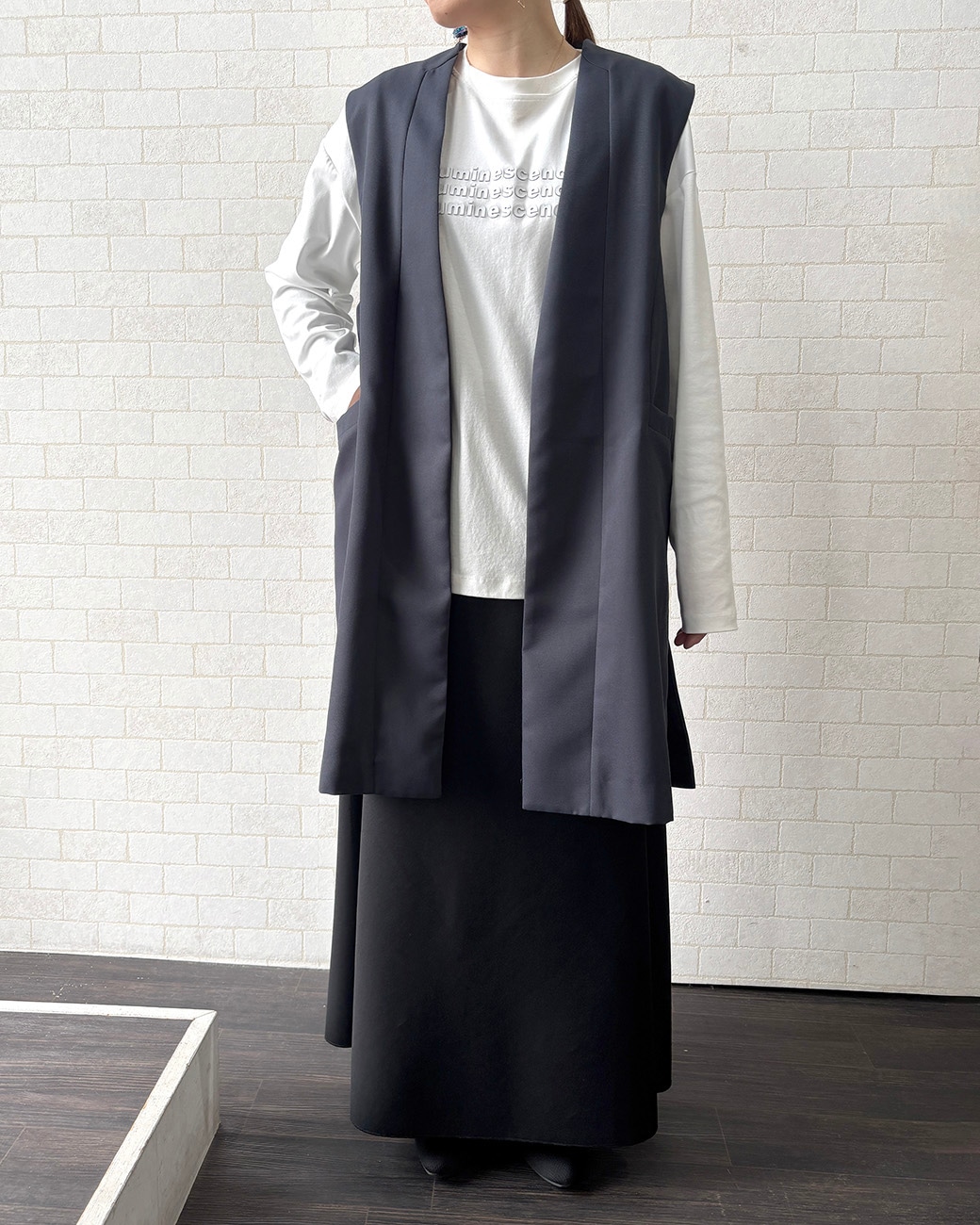 しっかりしたスーツ素材のような質感で、逆にロンTとかに合わせるとかわいいんです🫶