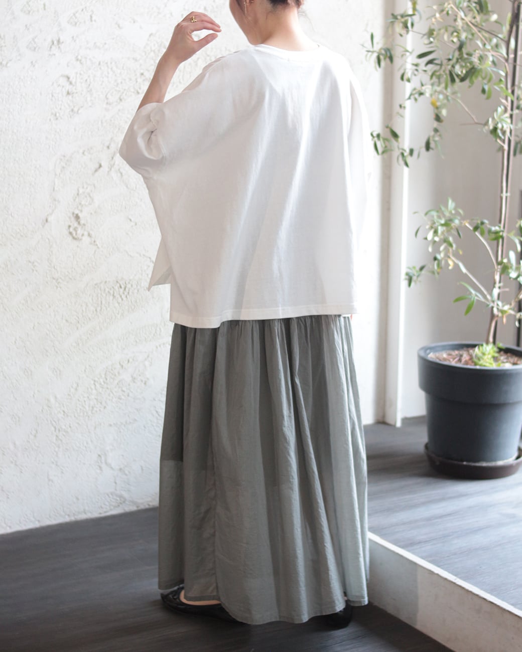 シンプルのスカートのため、トップスは柄物で遊んでも良いかも!