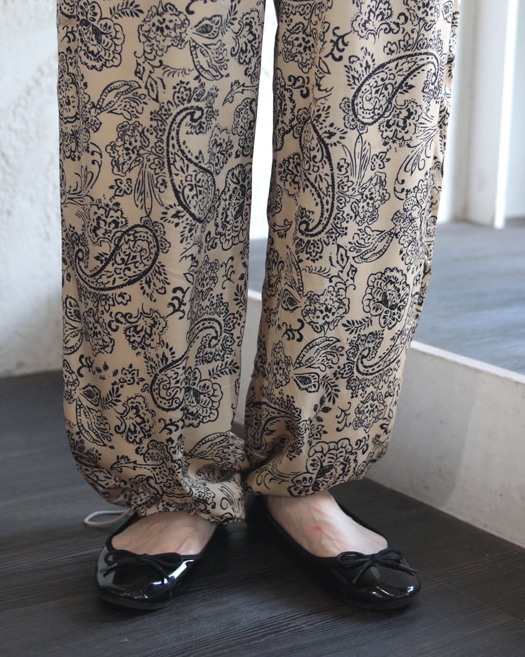 【ペイズリー柄 裾ドロスト イージーパンツ】