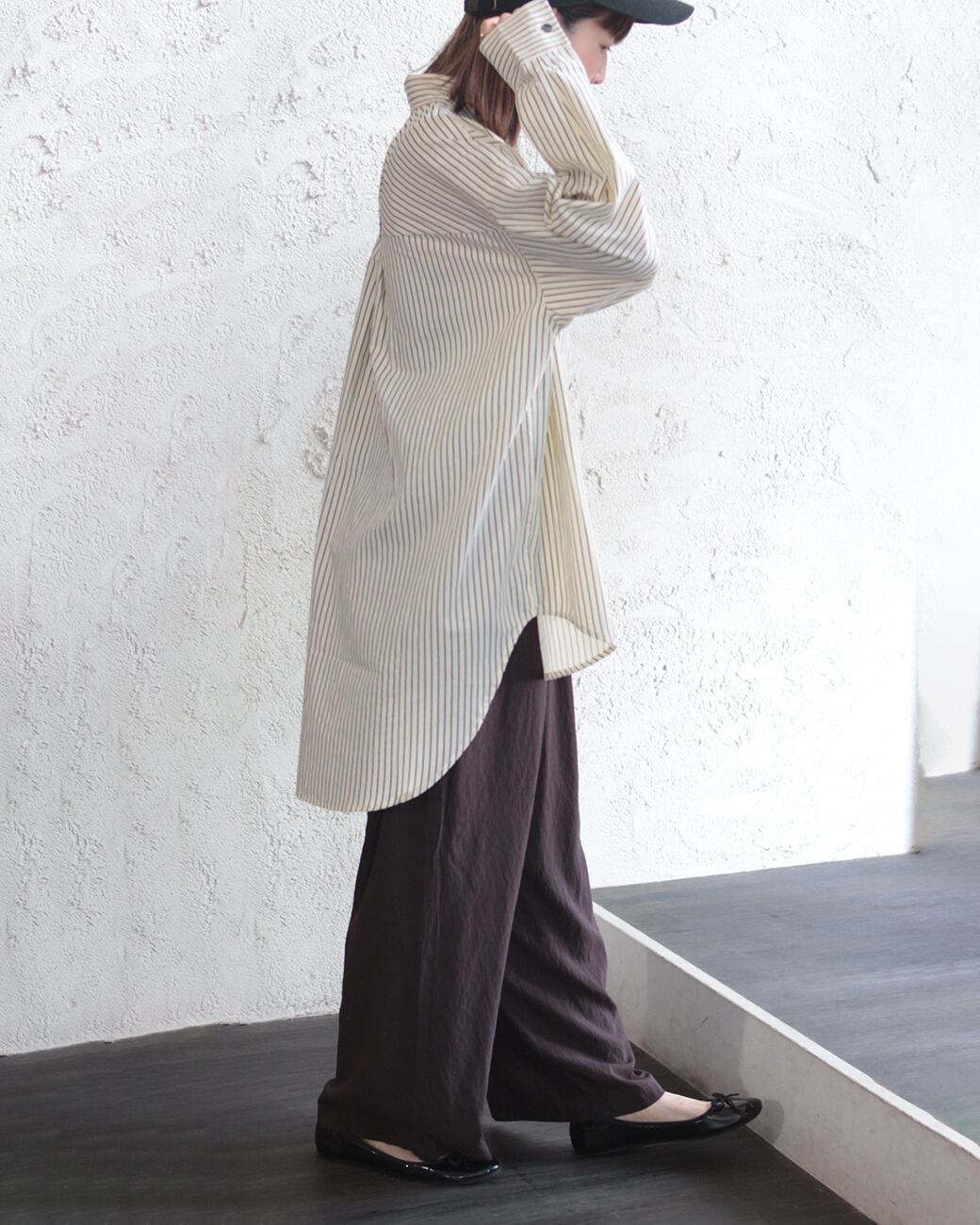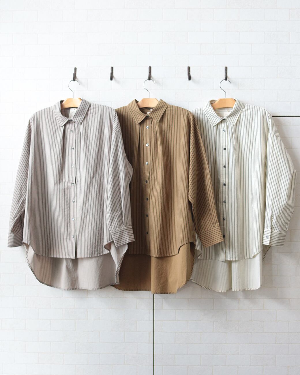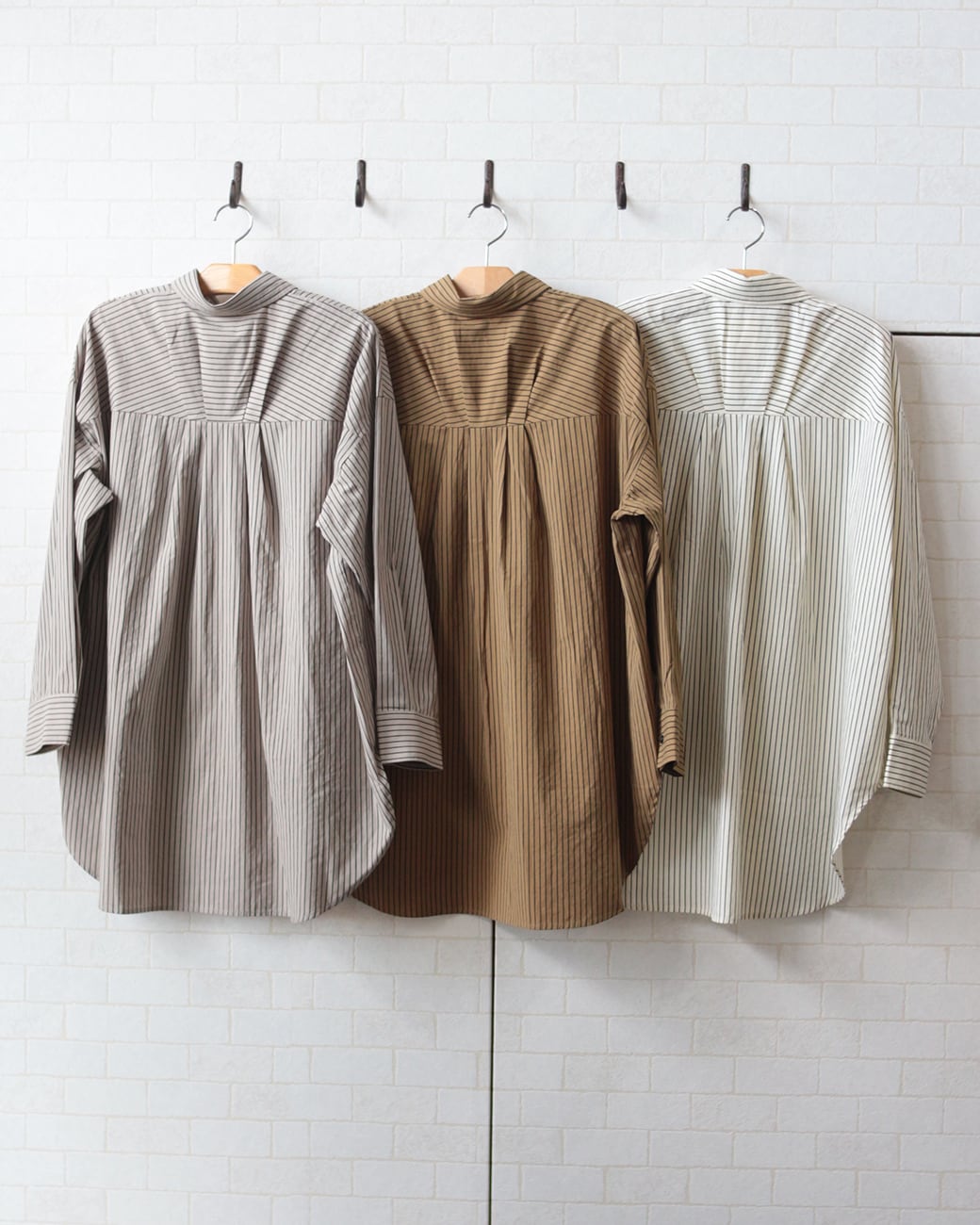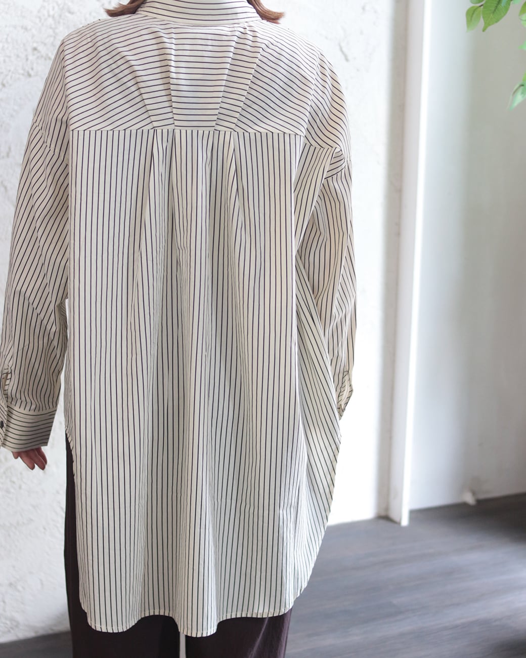 【後ろタックデザイン チュニックシャツ / ブロード ストライプ】