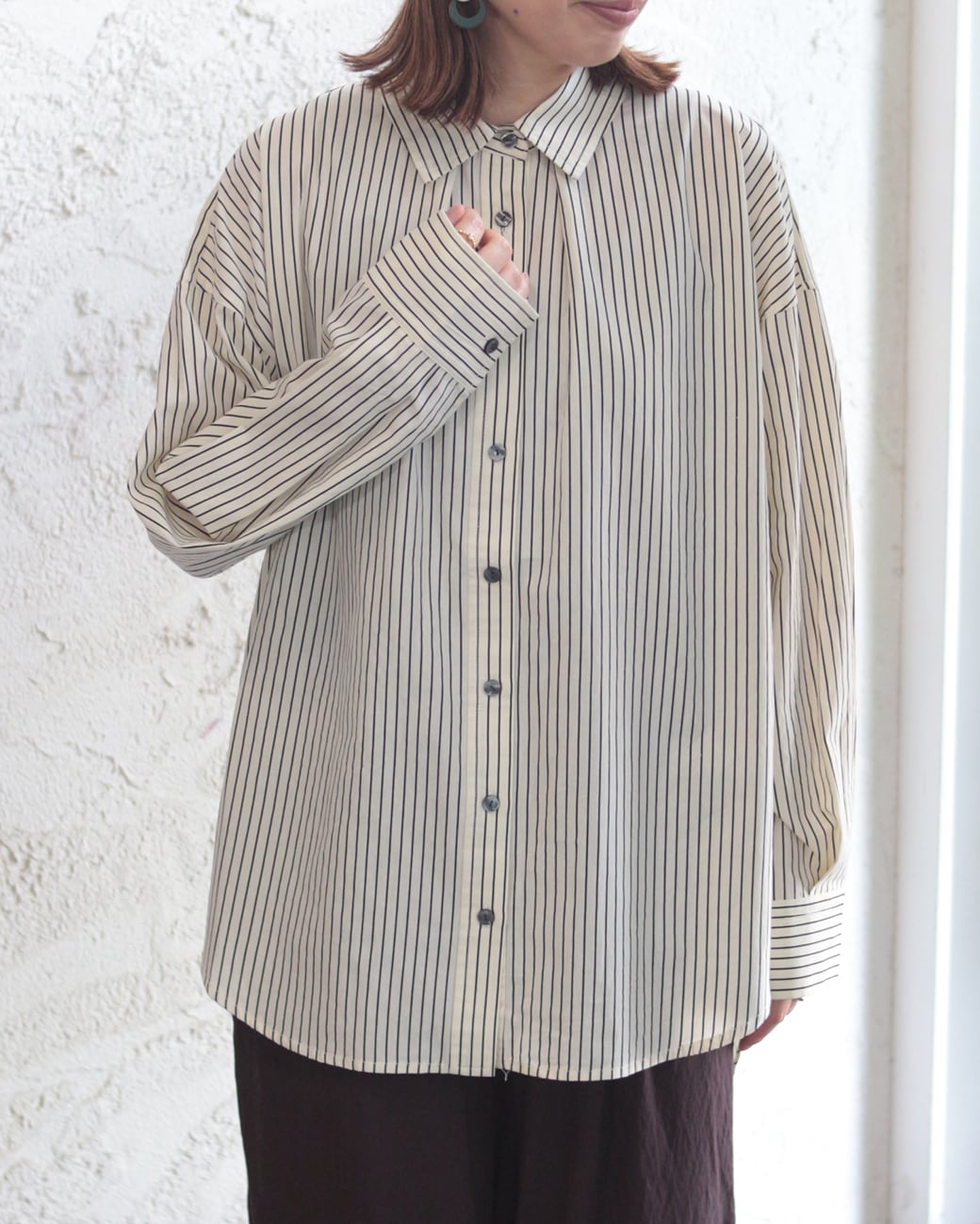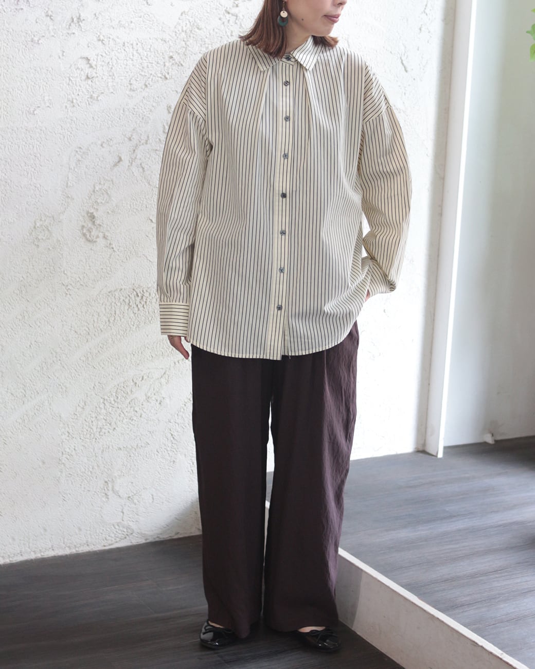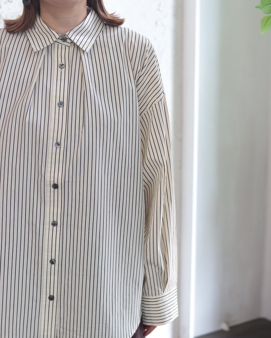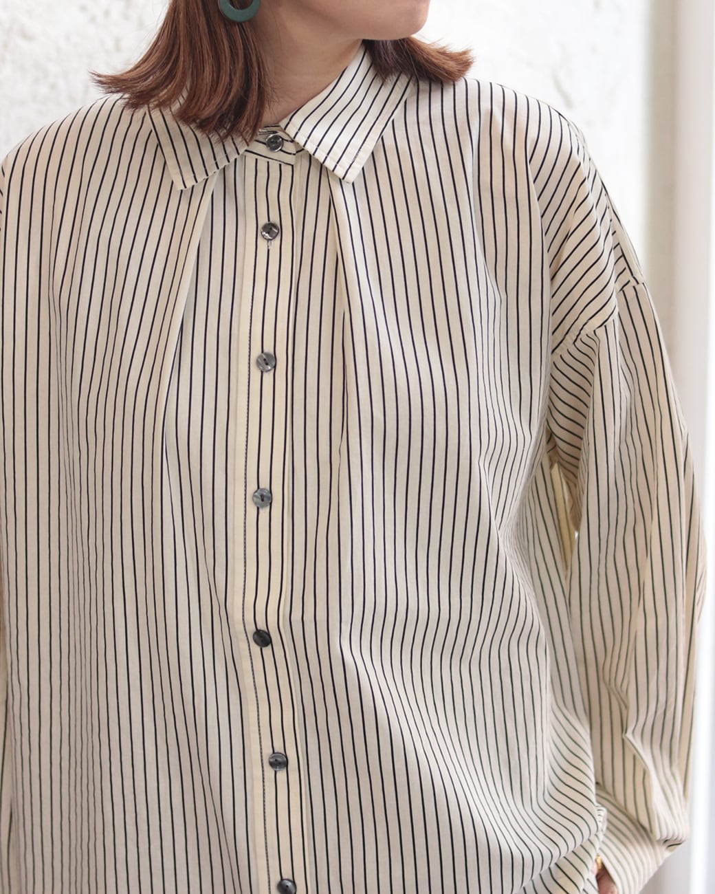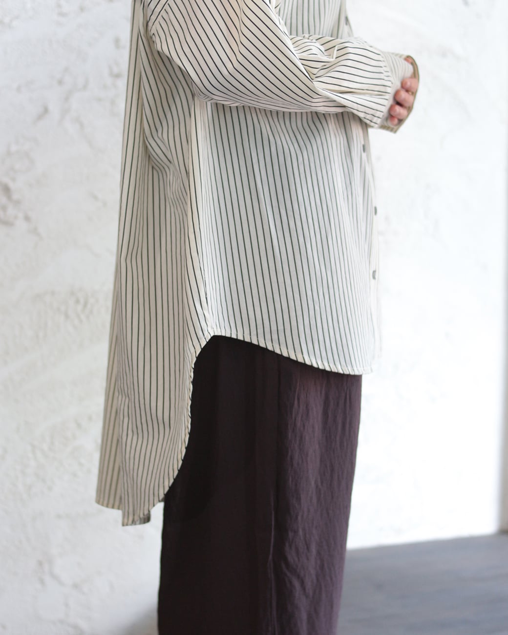 【後ろタックデザイン チュニックシャツ / ブロード ストライプ】