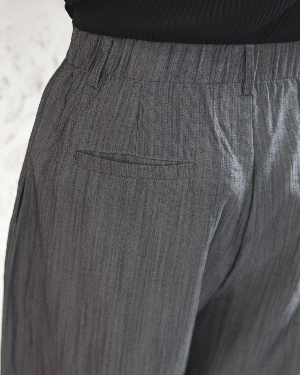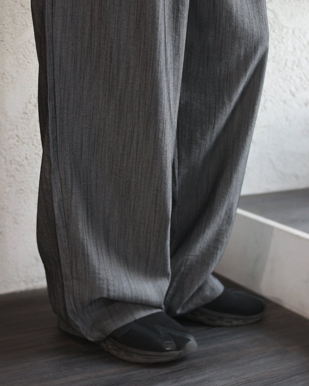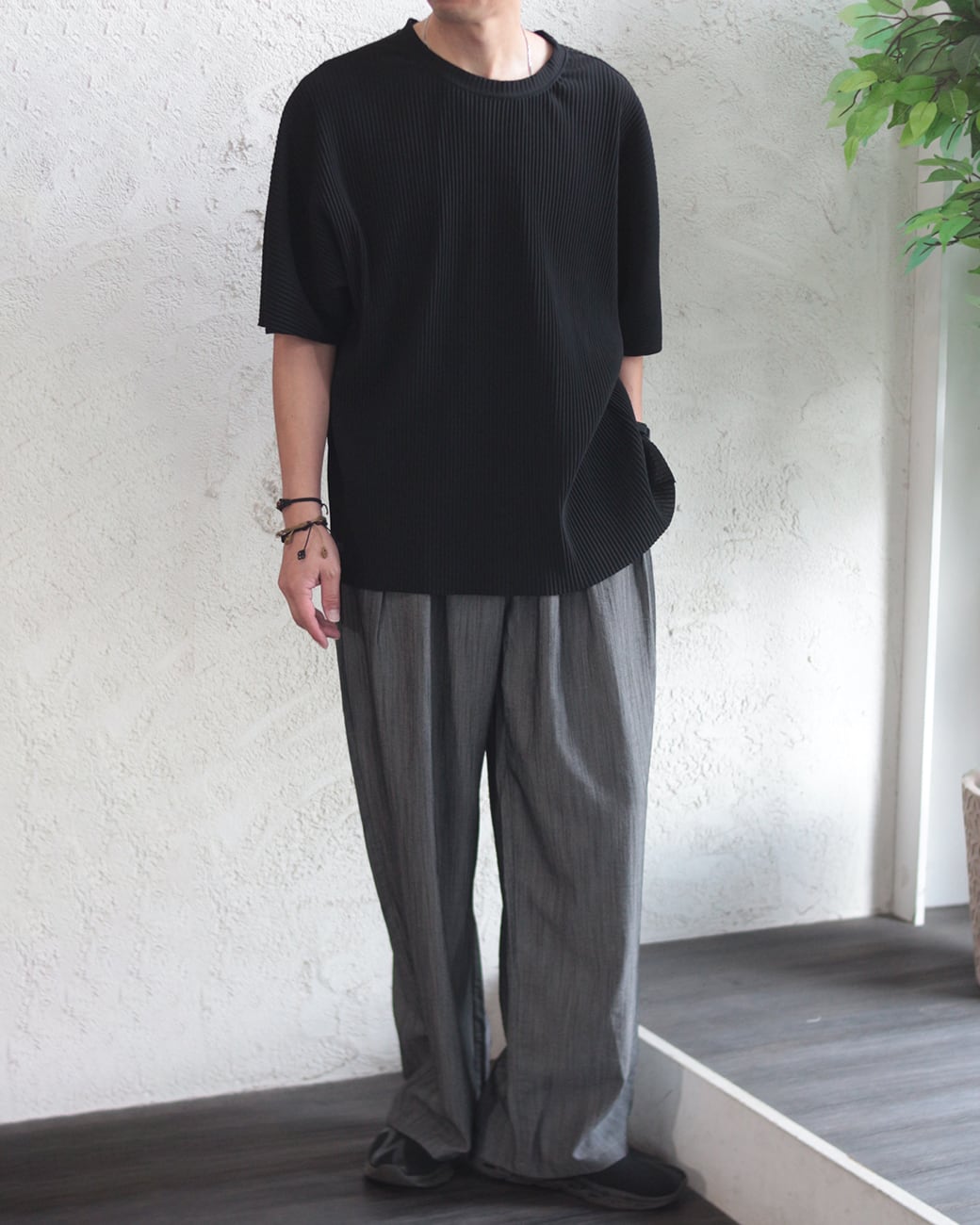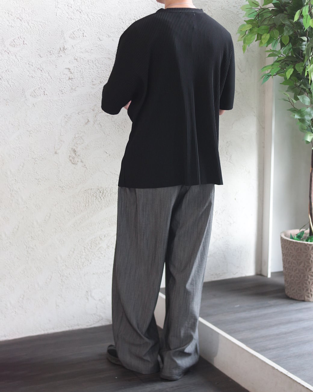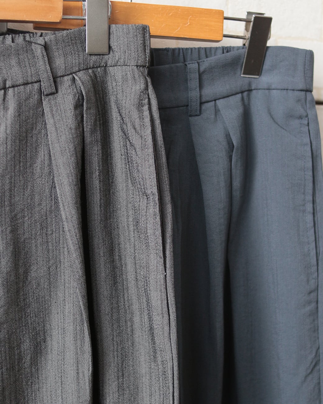裾にゆったりとしたたまりができる、今どきなバルーンシルエットを採用したワイドパンツ。軽やかな生地感とタックがもたらすゆとりによって、リラックス感のあるゆるりとした穿き心地に。同素材のシャツと合わせることで洗練されたセットアップスタイルに。