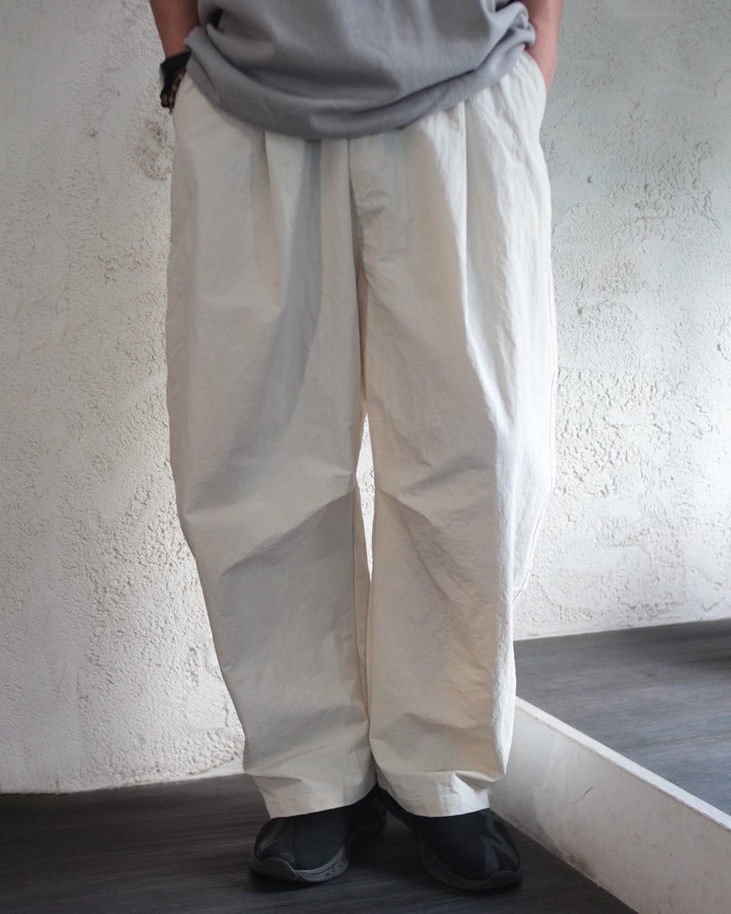 ナイロンパンツ バルーンシルエットパンツ タックパンツ ウエストゴムパンツ 春夏ボトム パラシュート
