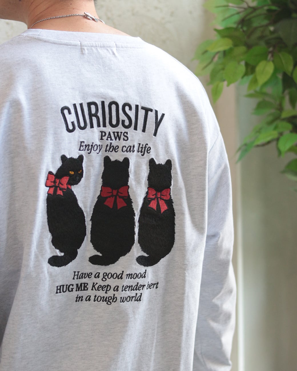 赤いリボンの黒猫が毛並みまでリアルな質感の刺繍ロンT!!
