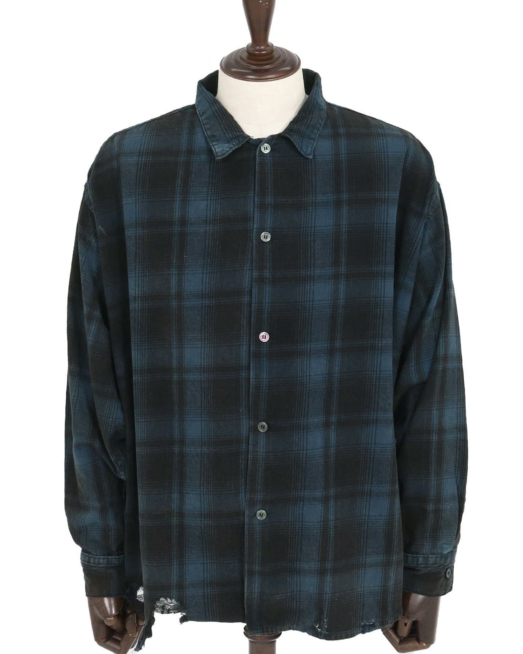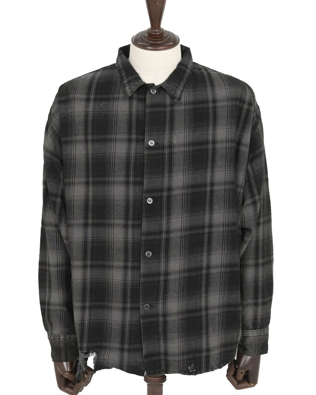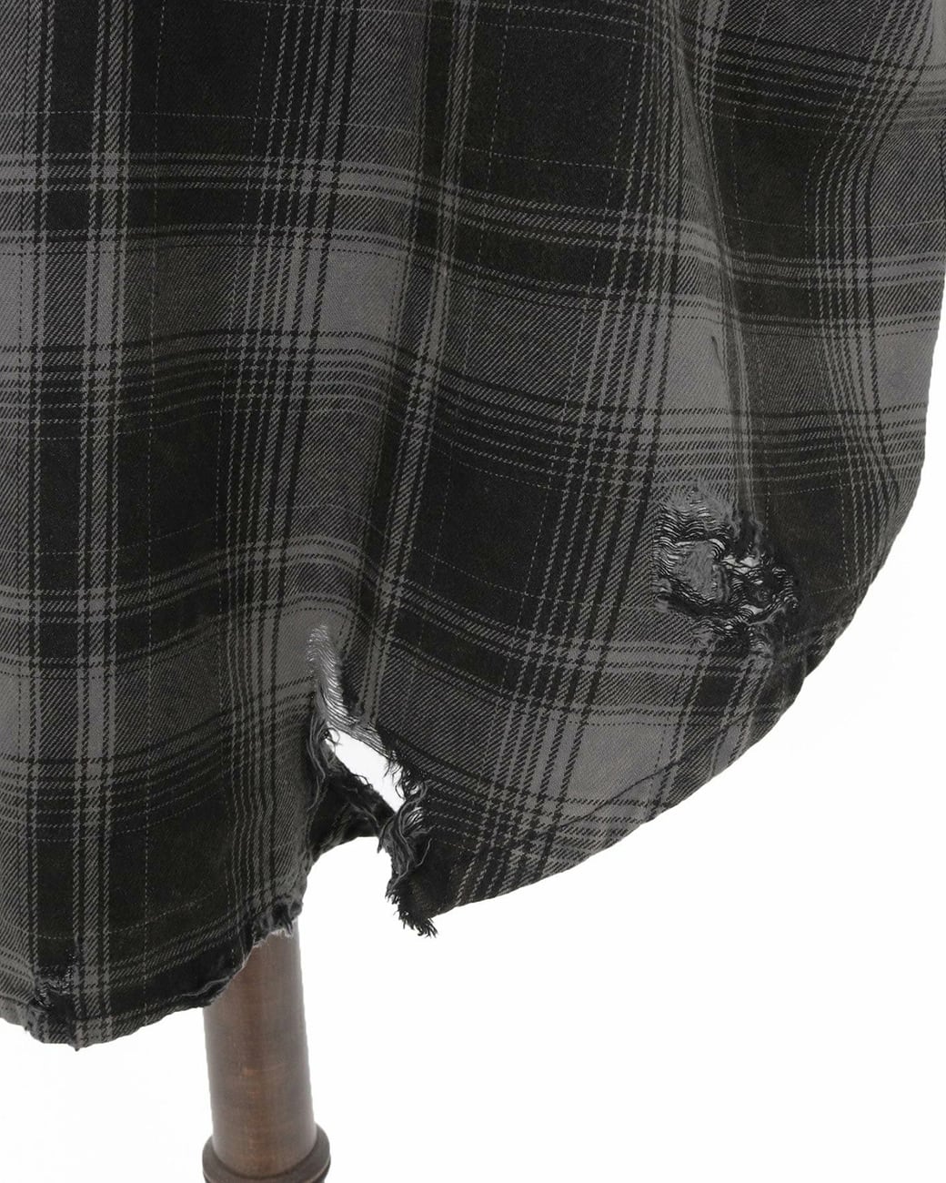 チェックシャツ ネルシャツ ネルチェックシャツ 長袖 ダメージ リメイク 羽織り 裾口 破れ