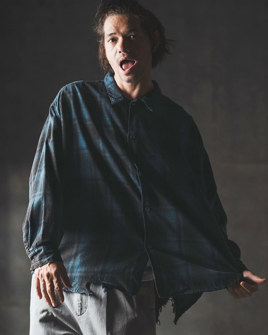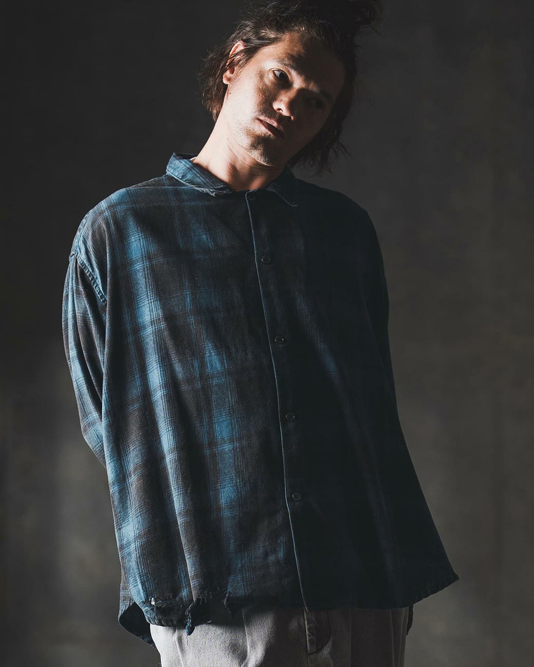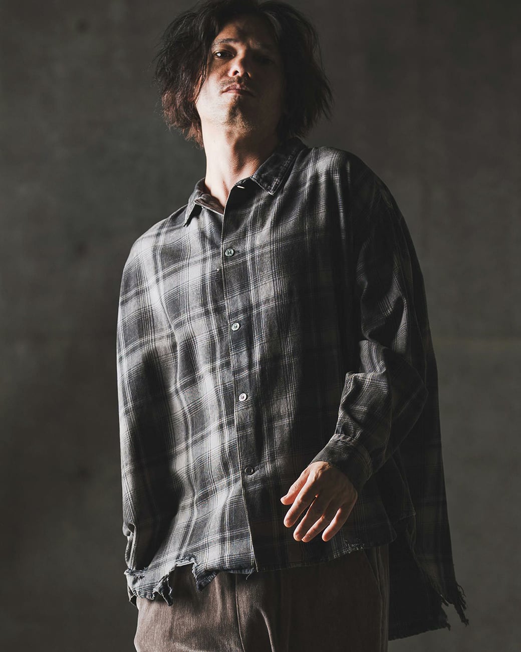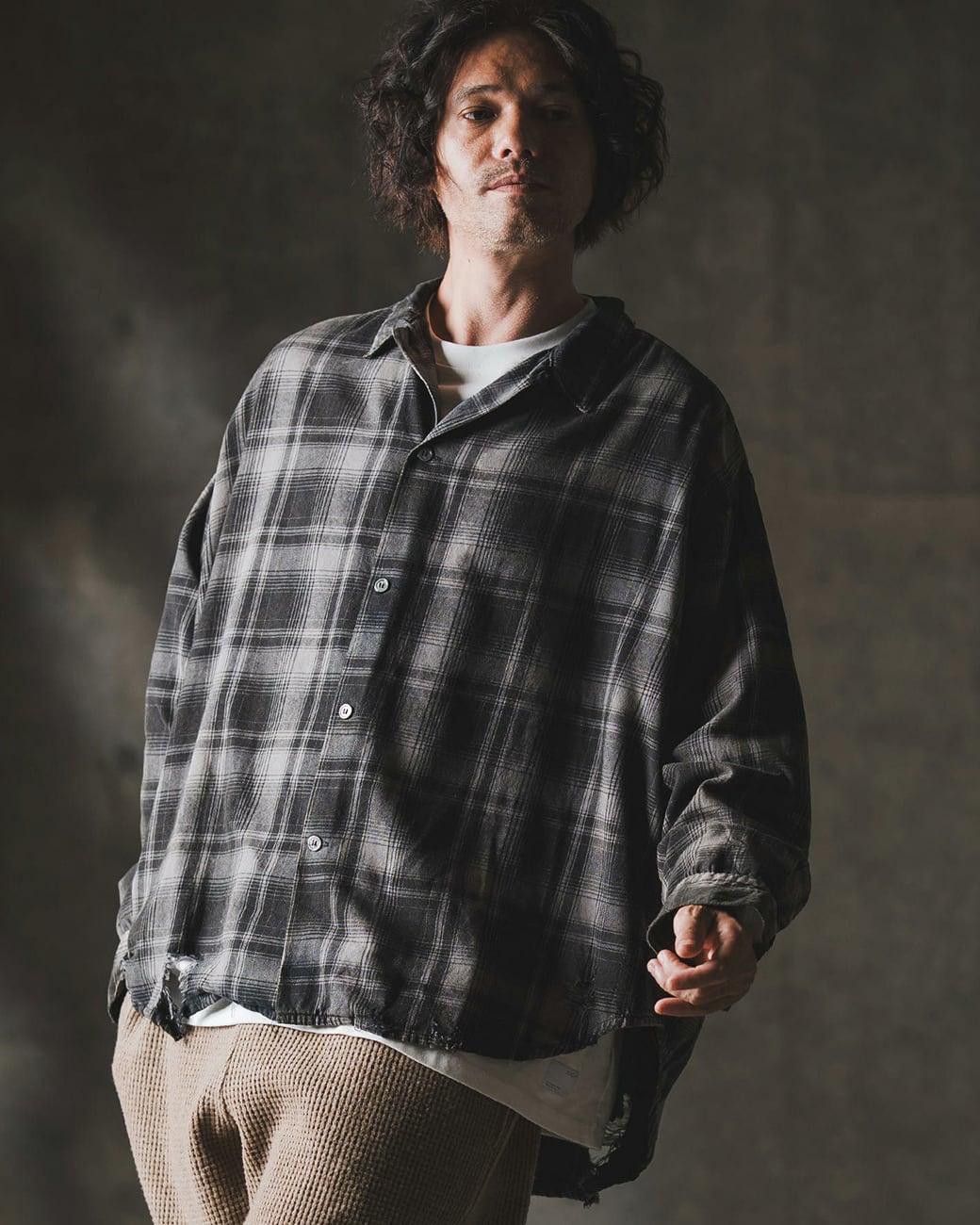 チェックシャツ ネルシャツ ネルチェックシャツ 長袖 ダメージ リメイク 羽織り 裾口 破れ