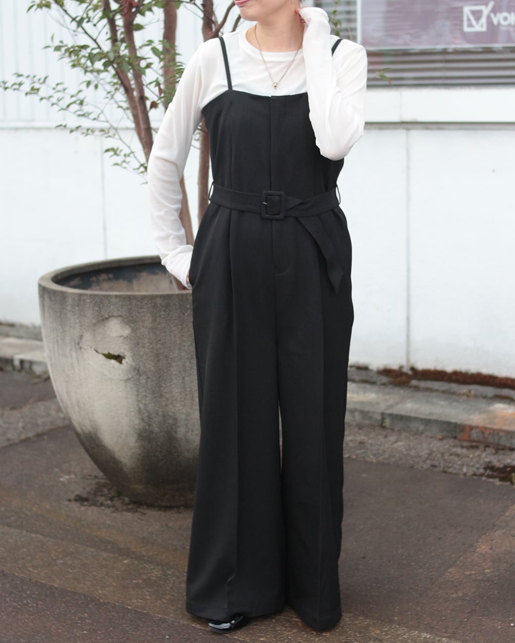 サロペ サロペット キャミ オールインワン ワイド ワイドパンツ ベルト