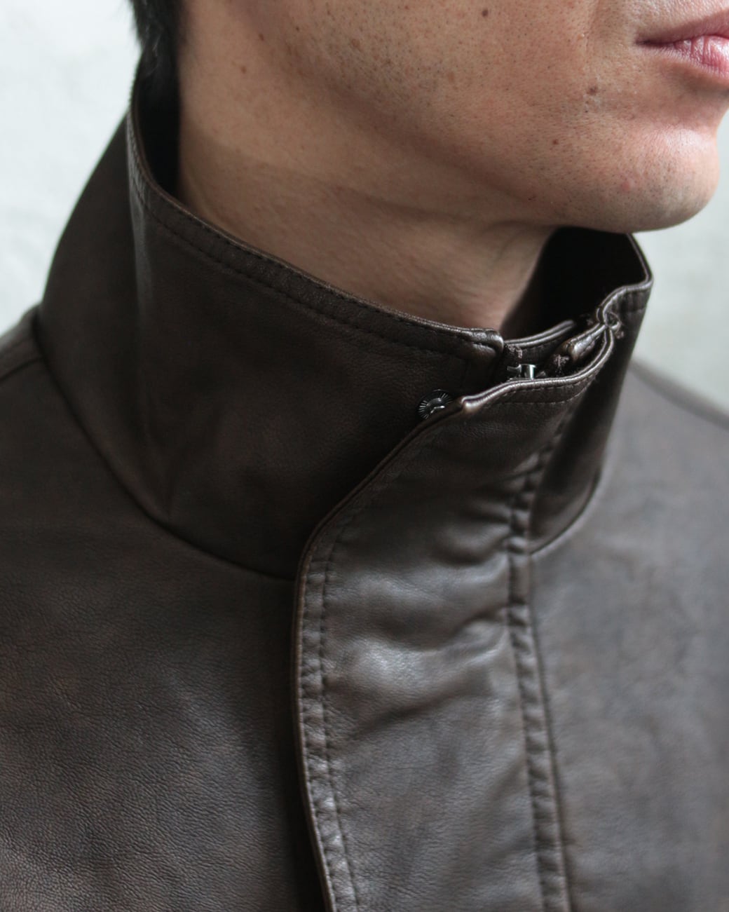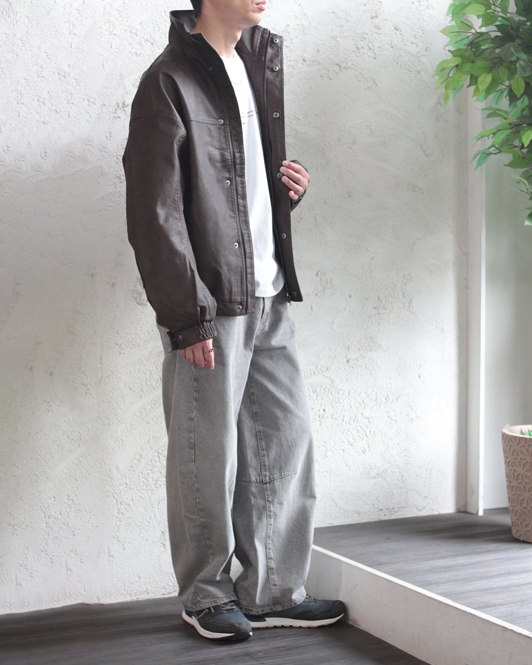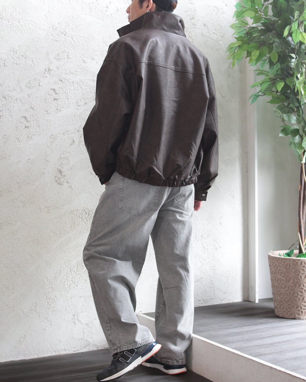 【ウォッシュド 合革ブルゾン スタンドブルゾン】