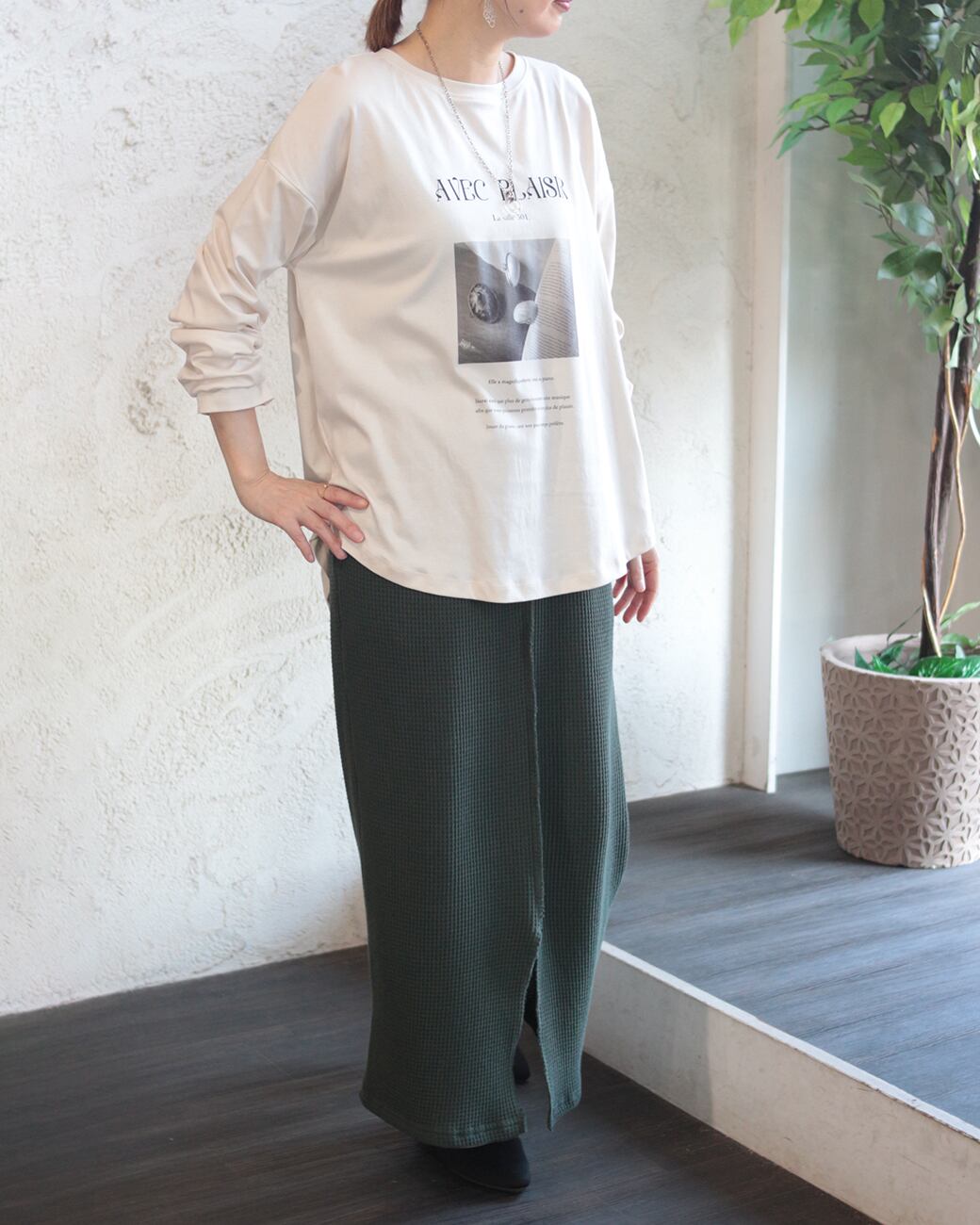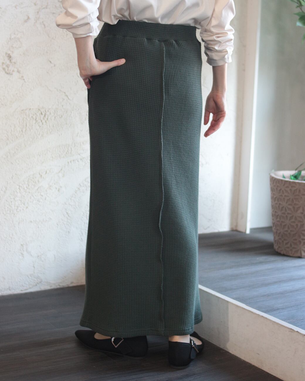表情豊かな鬼ワッフル素材を使用したロングスカート。