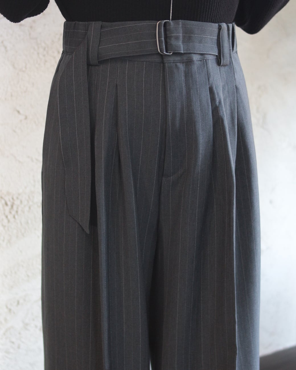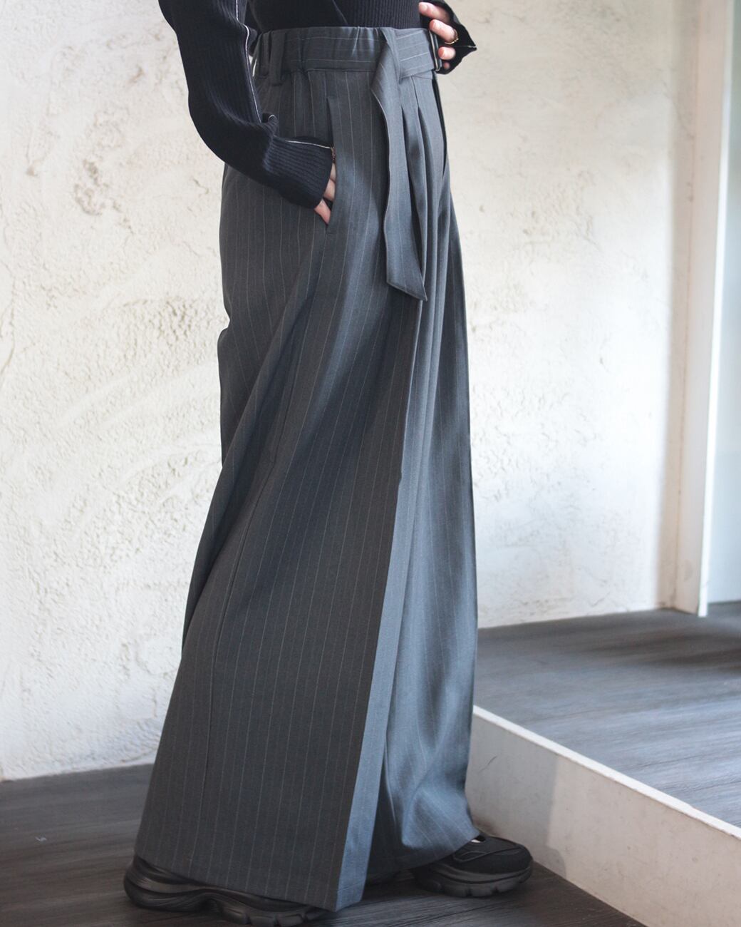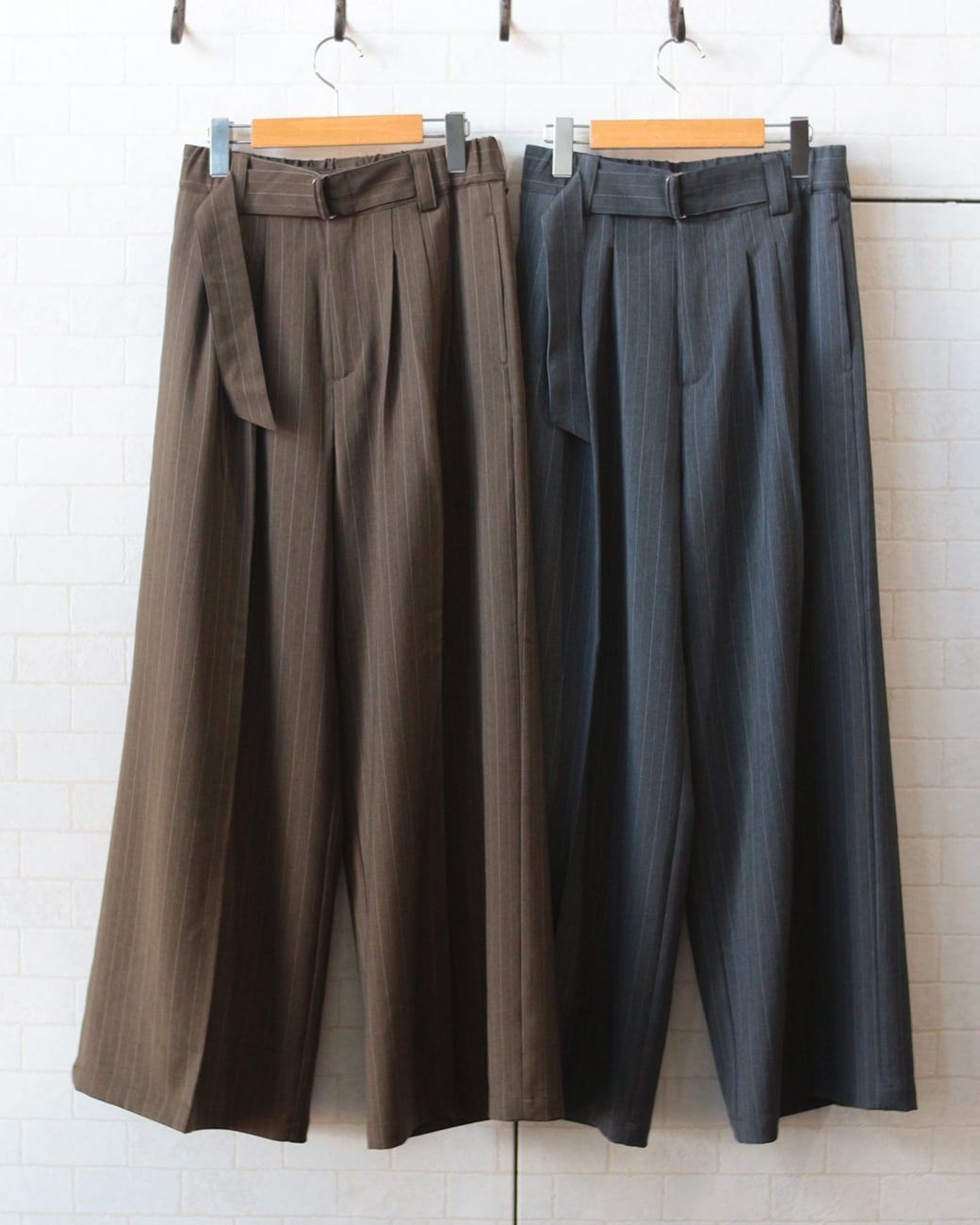 パンツ イージーパンツ ワイドパンツ ベルト付き 3タック タックパンツ スラックス ストライプ ピンストライプ
