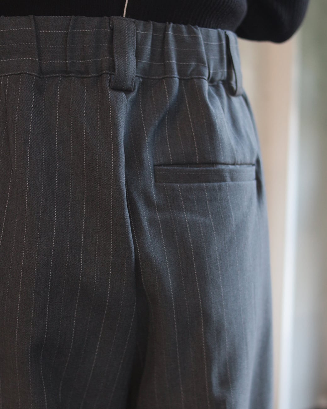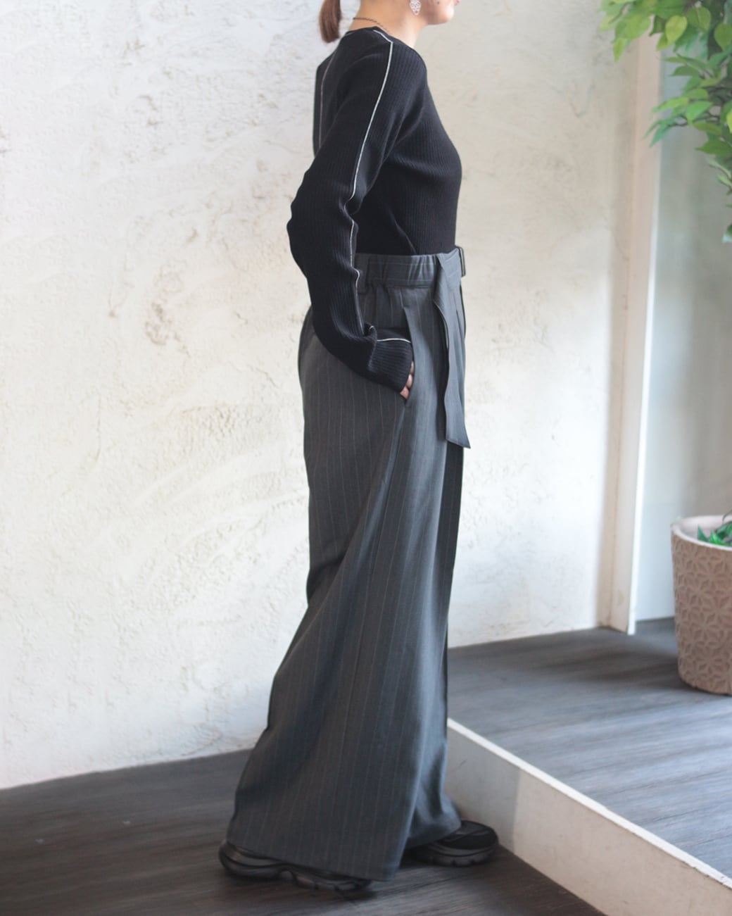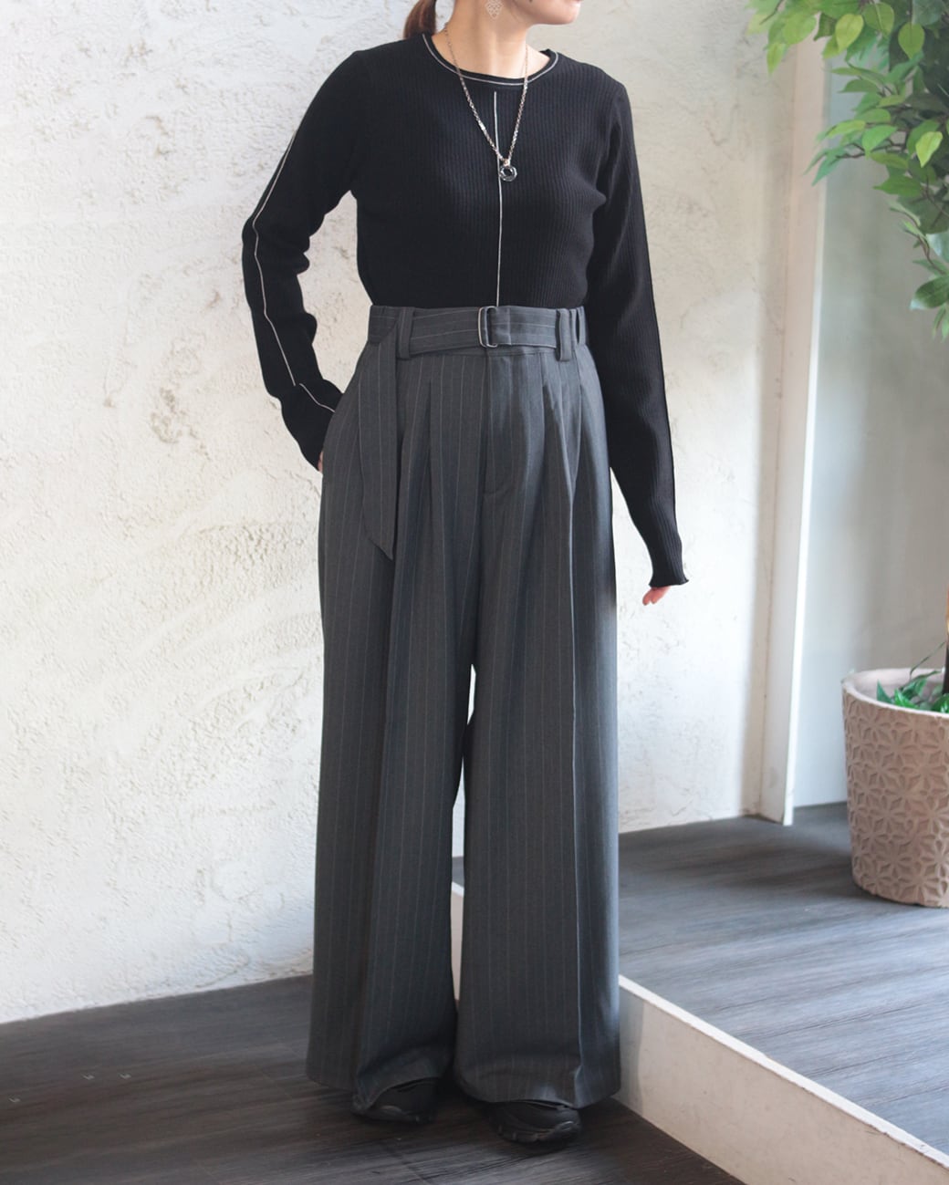 パンツ イージーパンツ ワイドパンツ ベルト付き 3タック タックパンツ スラックス ストライプ ピンストライプ
