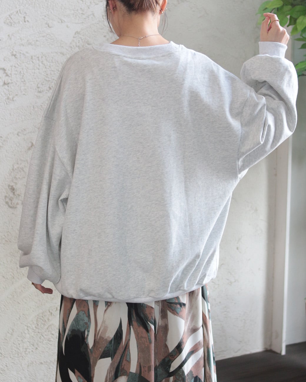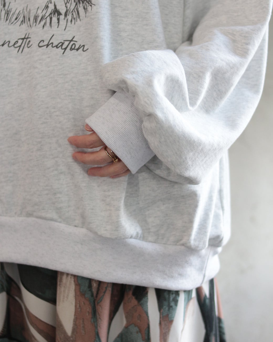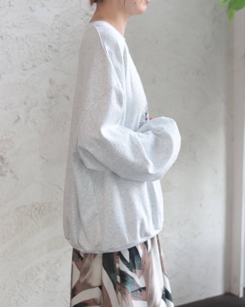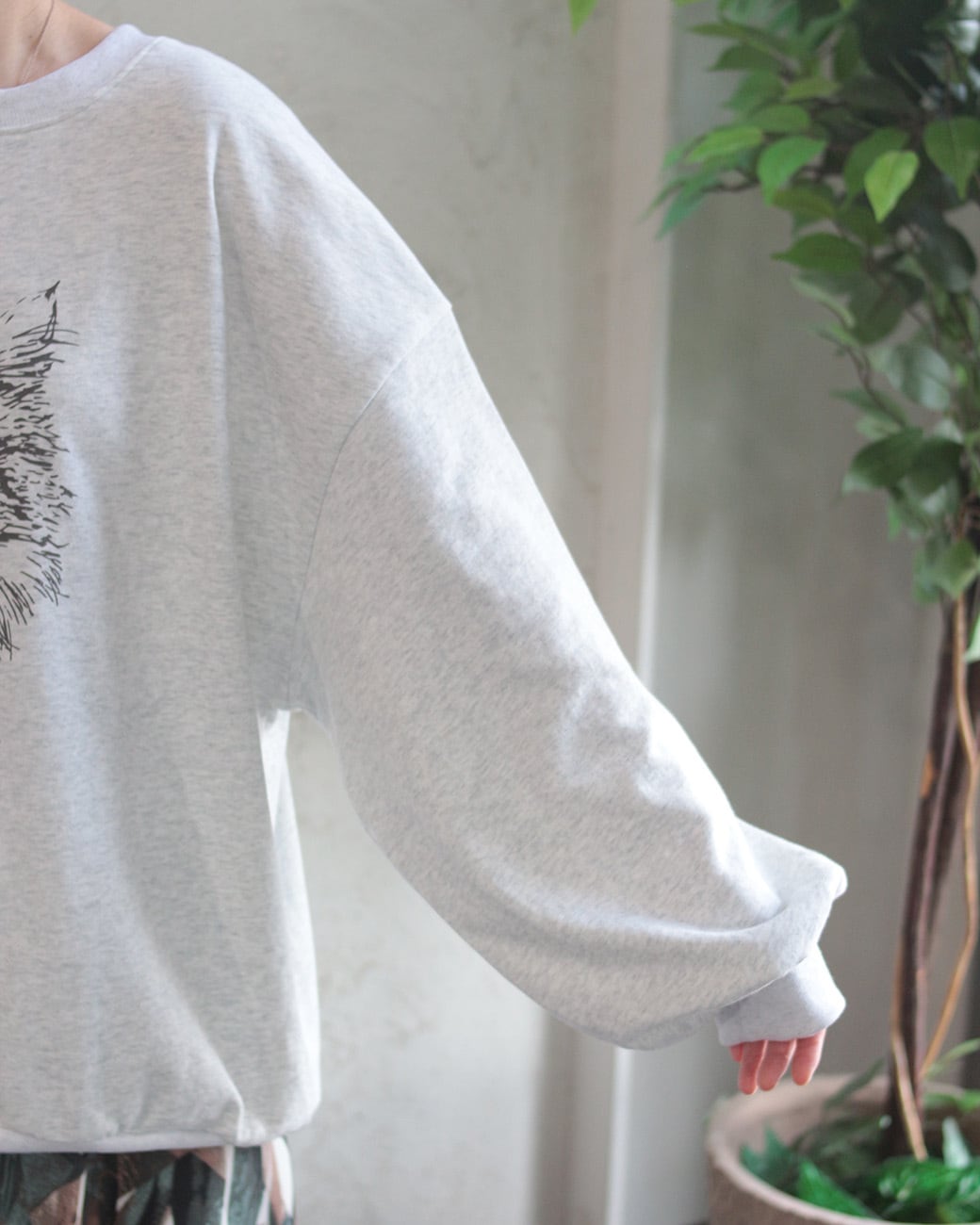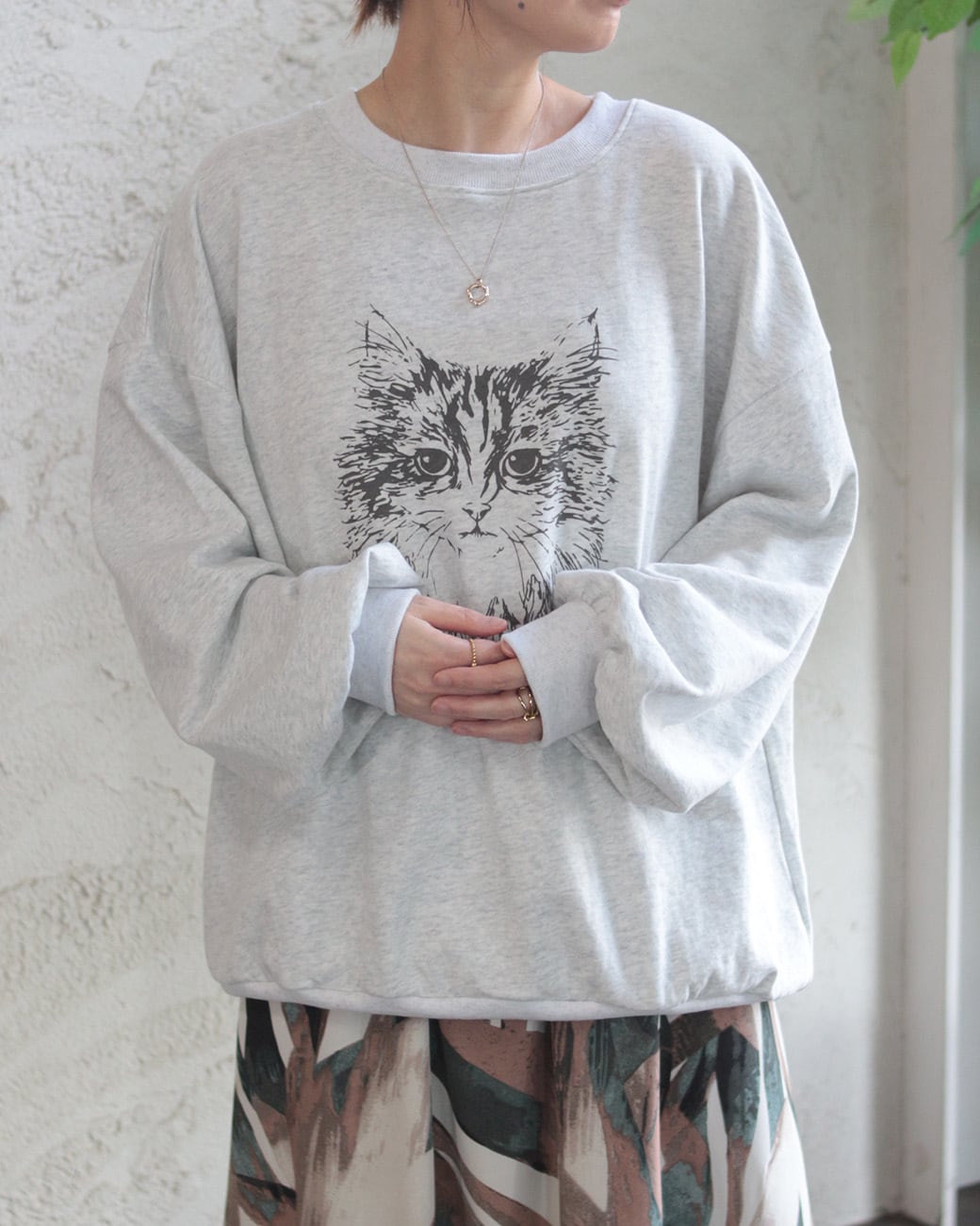 スウェット トレーナー クルーネック ビッグ 大きめ ゆったり ネコ ねこ 猫 アニマル リブ グレー 杢グレー