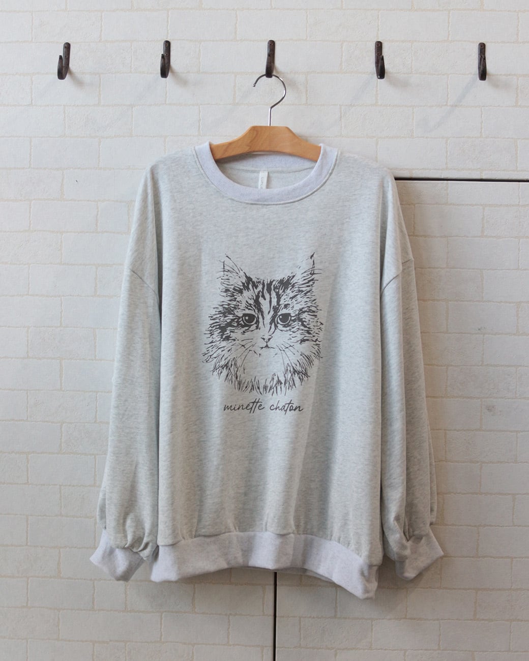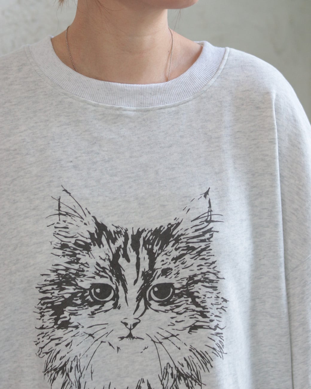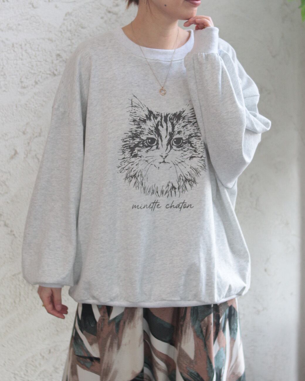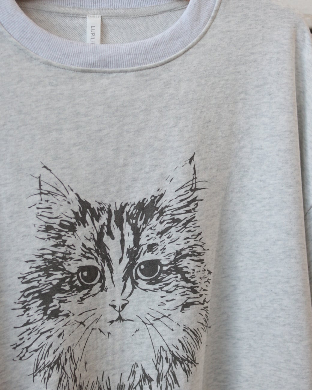愛らしい存在感を纏う、癒しの猫プリントスウェット。