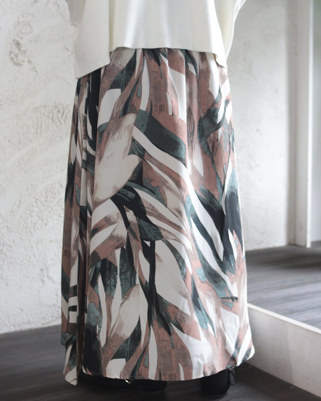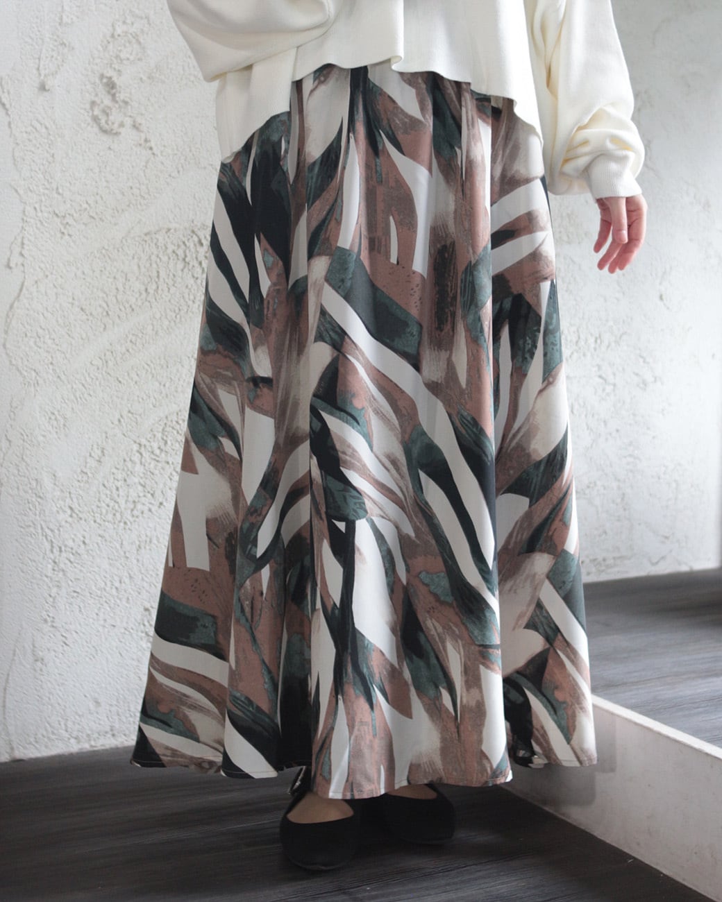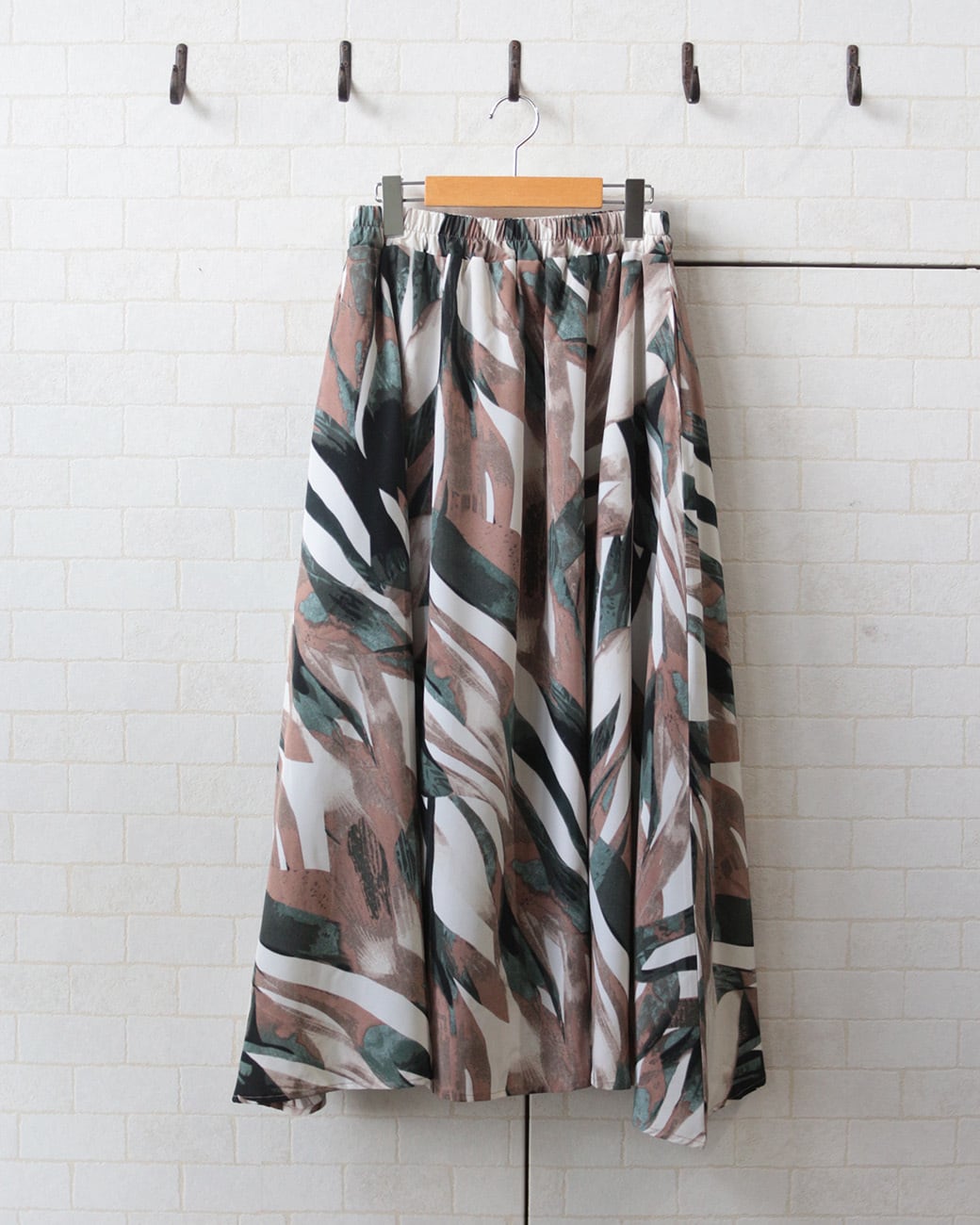 大胆なブラシタッチが目を引くアートプリントイージースカート。