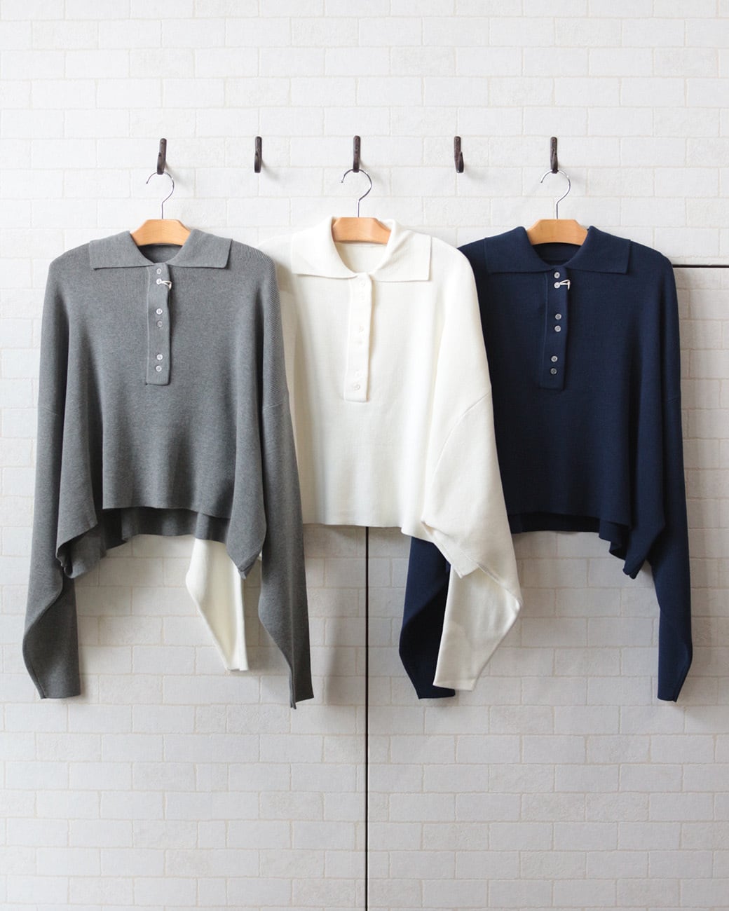今までなかったニットポロシャツ。衿もかわいいし、ボリュームのある袖もとってもかわいい!