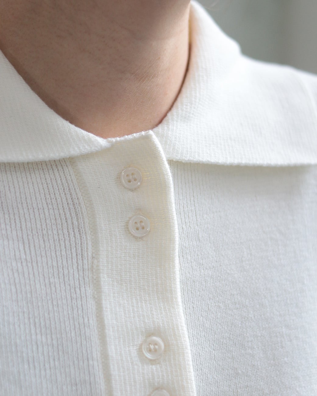 ・ポロ襟のディテールで、カジュアルながら品のある印象
