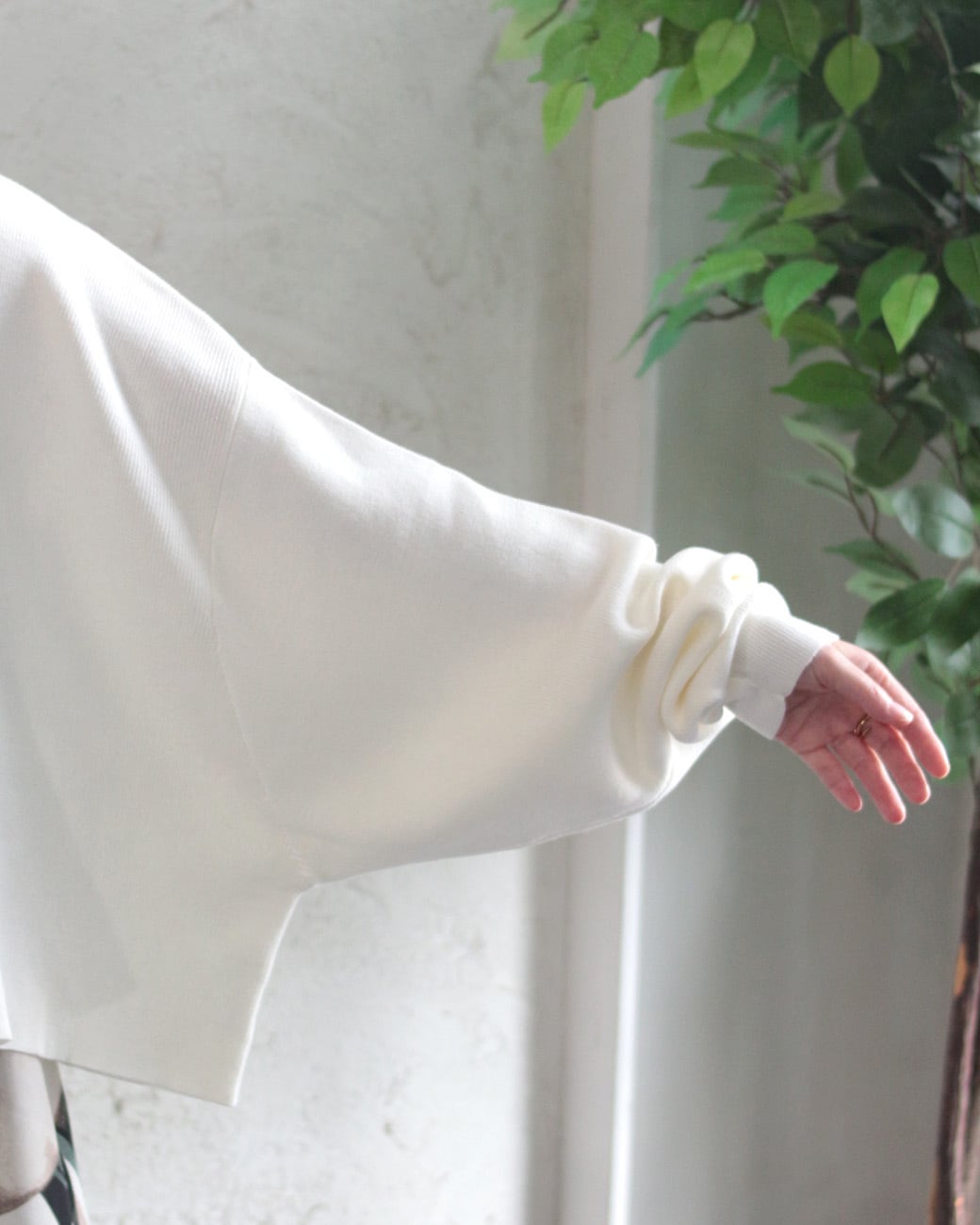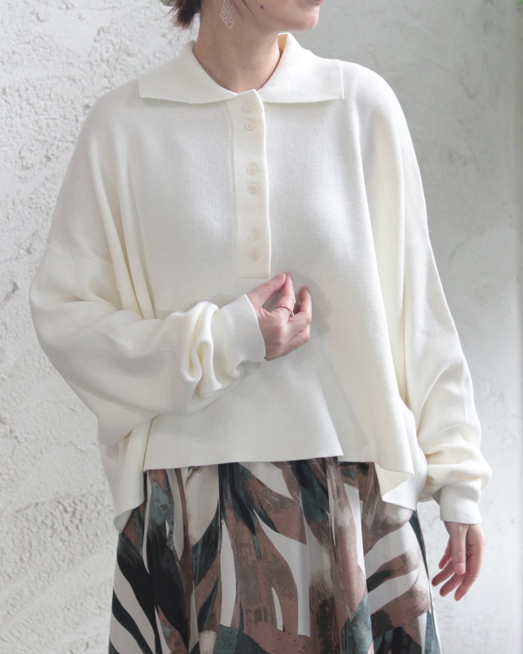 クラシカルな表情と抜け感を楽しむ、袖ボリュームポロニット。
