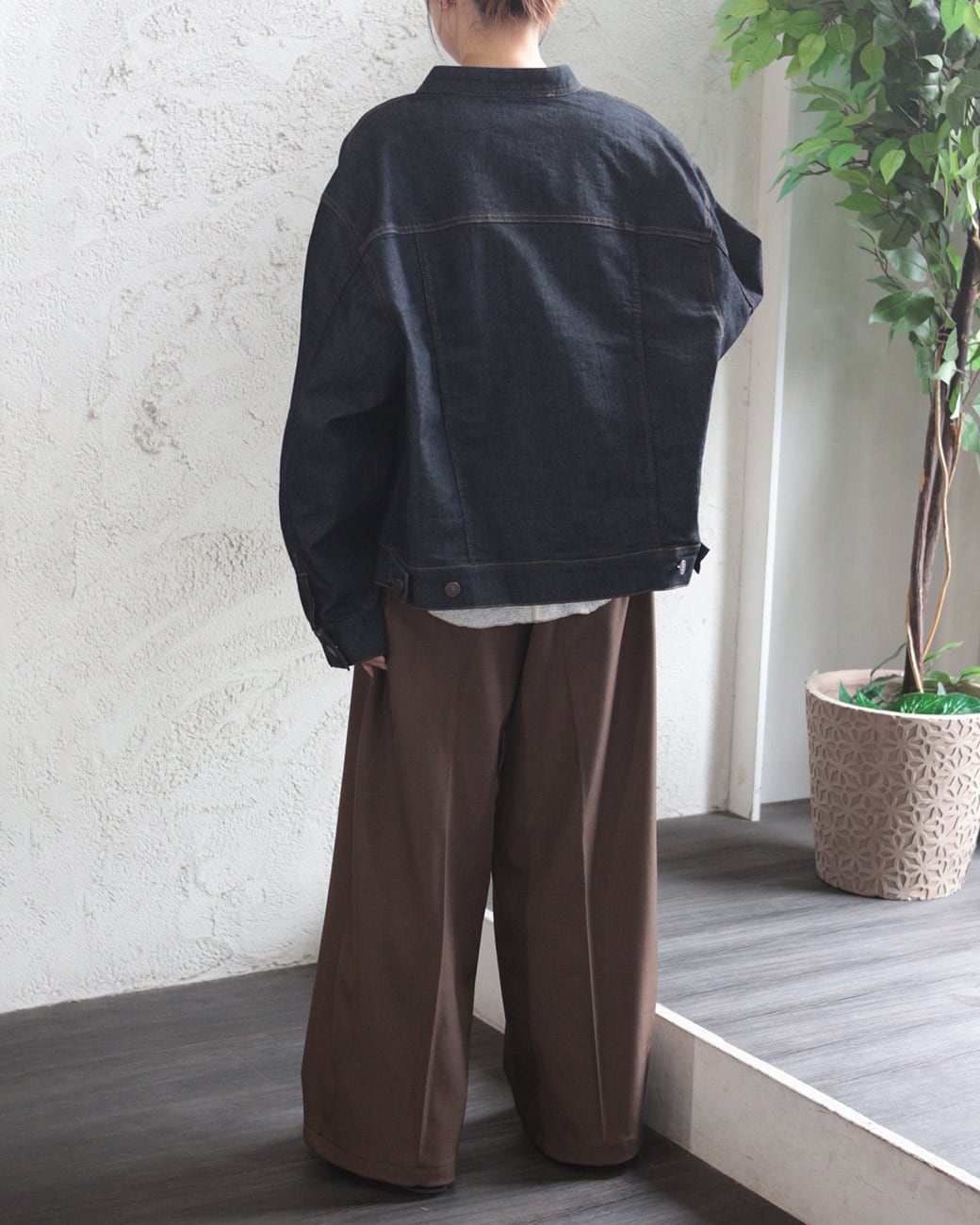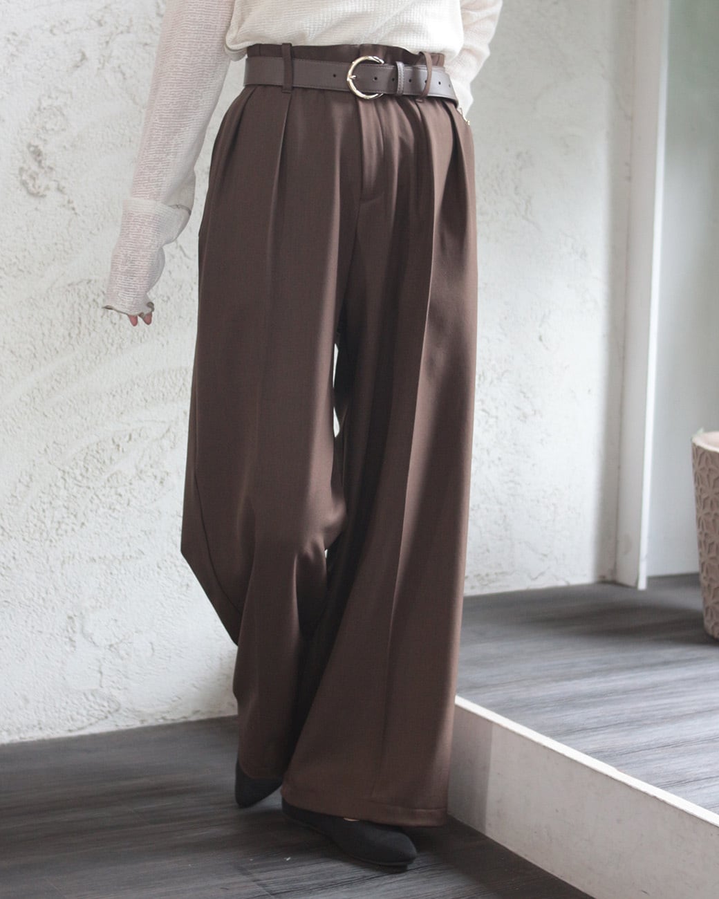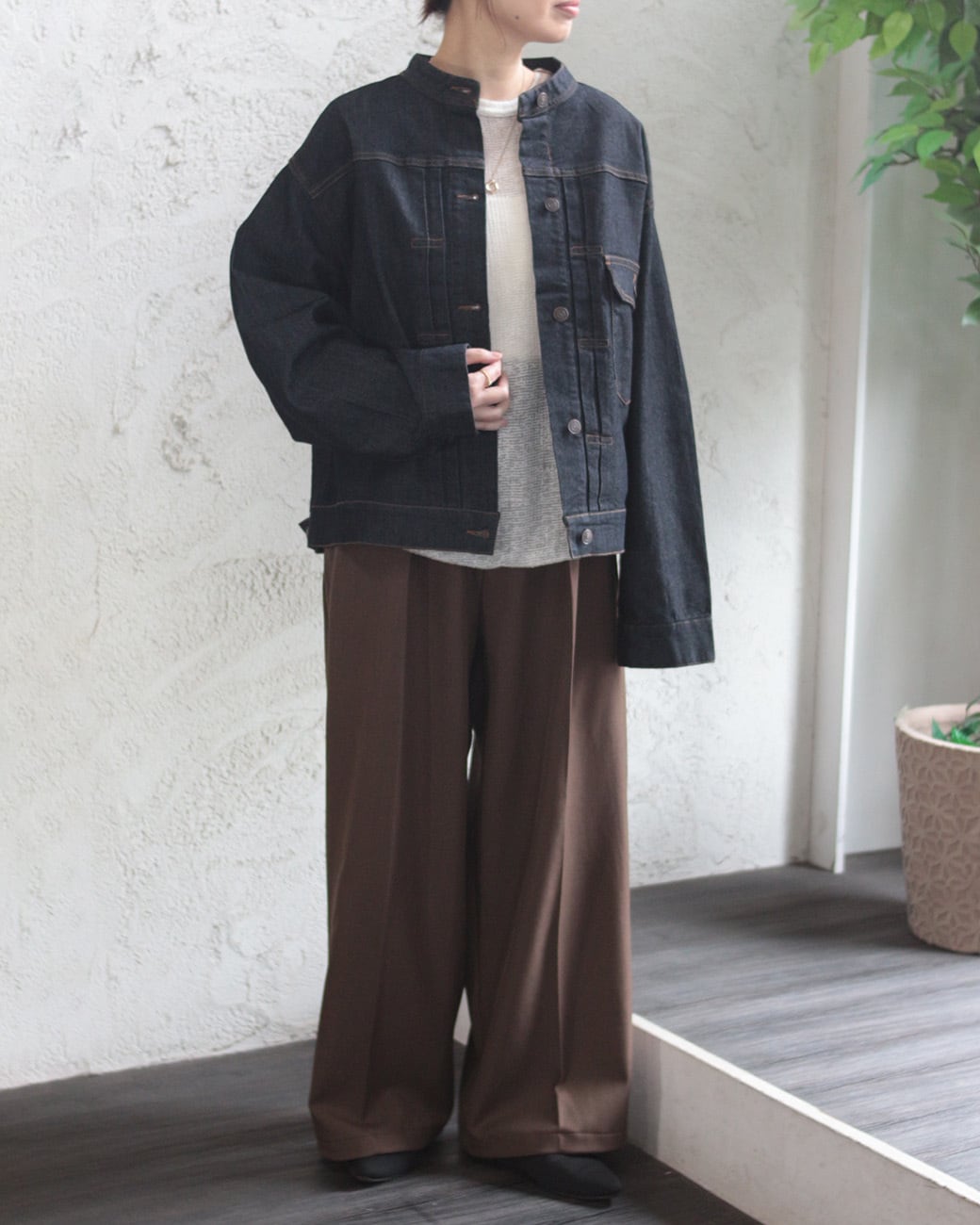 マニッシュなタックパンツは、デザイン性のあるトップスがおすすめです。