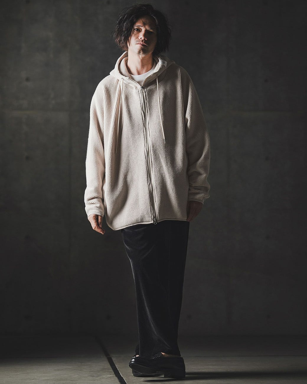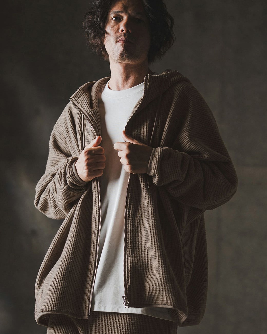 【Zip-up hoodie-Soft brushed waffle fabric-】