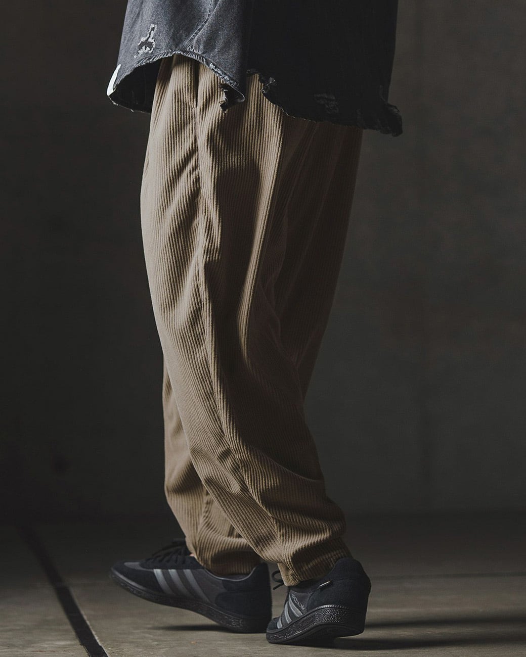 ワイドコールのコーデュロイを使用したバルーンパンツ。