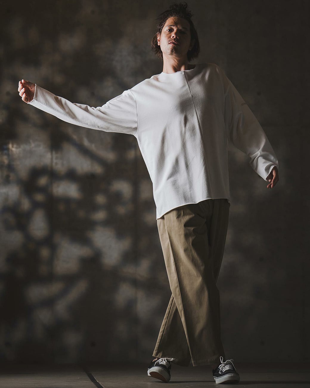 ミニ裏毛カットソーを使用したオーバーサイズシルエットのロングスリーブT-shirt。