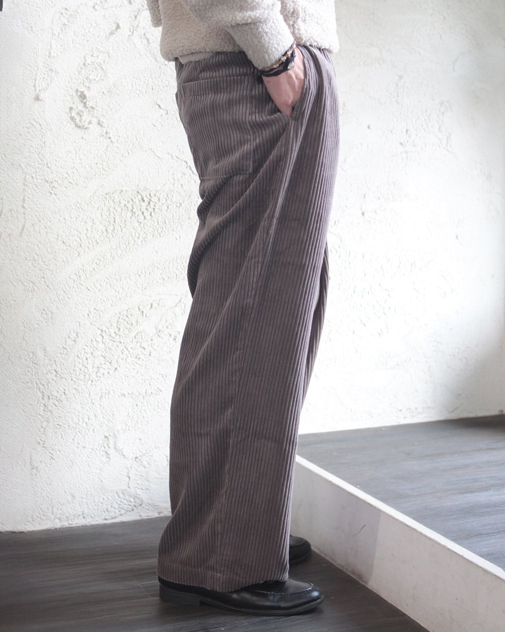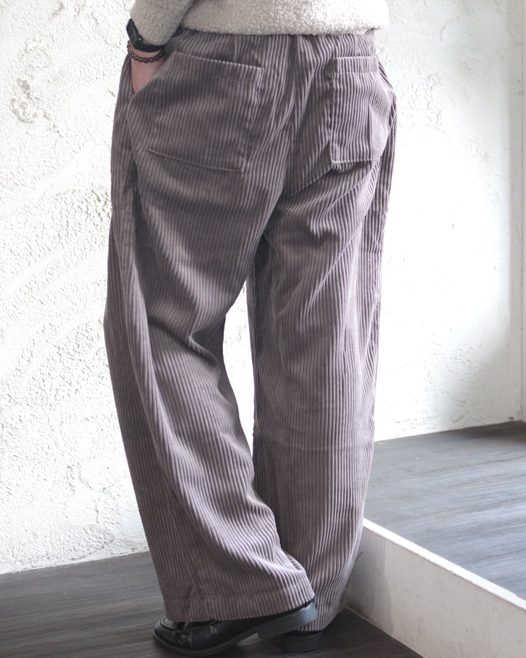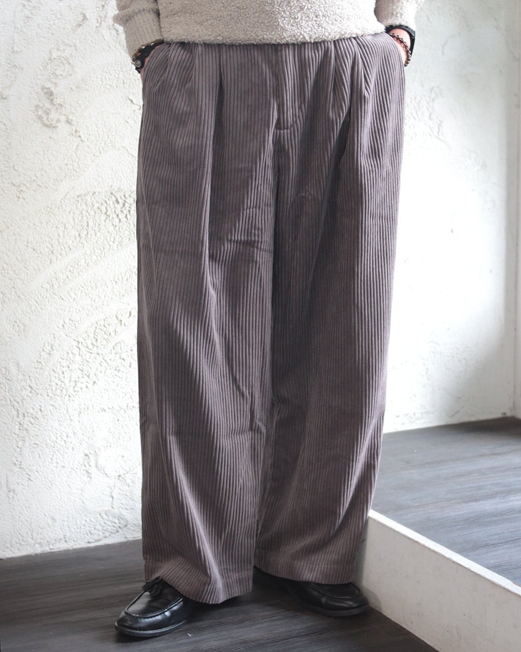 コーデュロイ ワイドパンツ あったか 冬 パンツ 太畝 太い ゆったり ワイド ベルトループ ワイドストレート