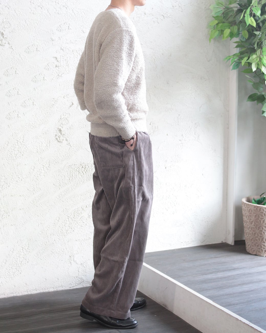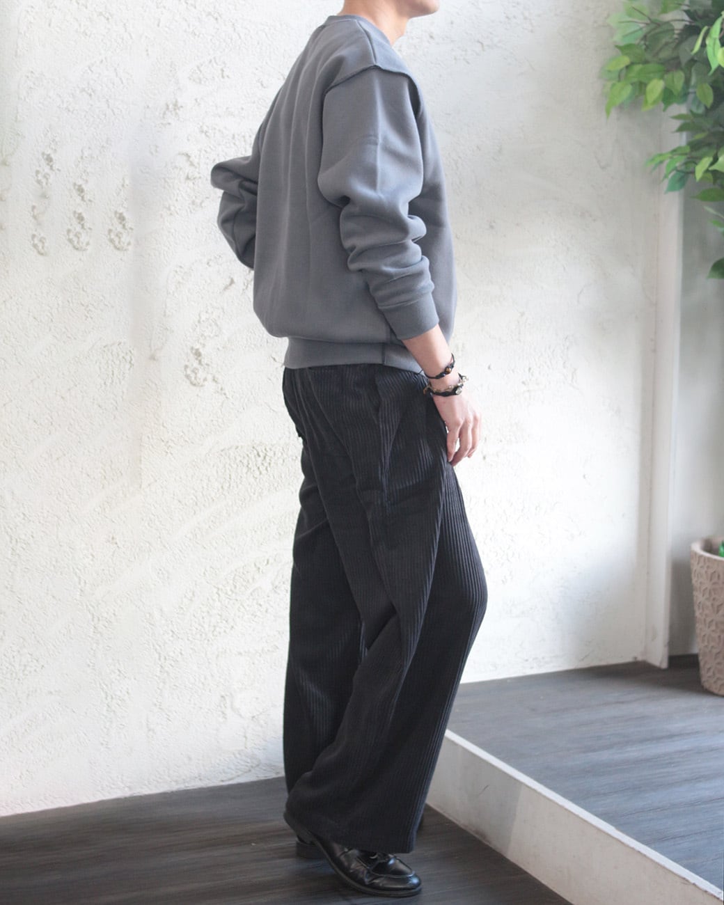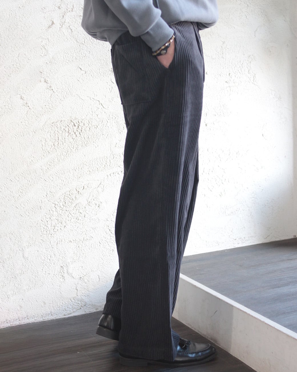 コーデュロイ ワイドパンツ あったか 冬 パンツ 太畝 太い ゆったり ワイド ベルトループ ワイドストレート