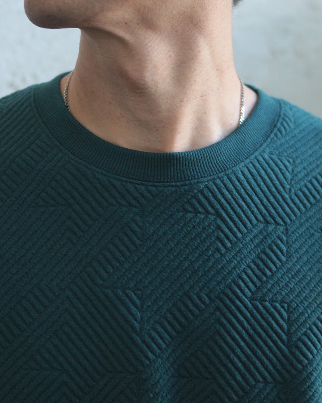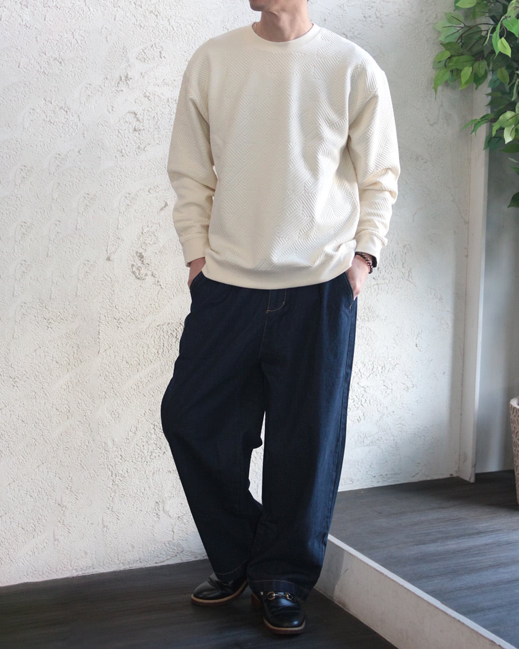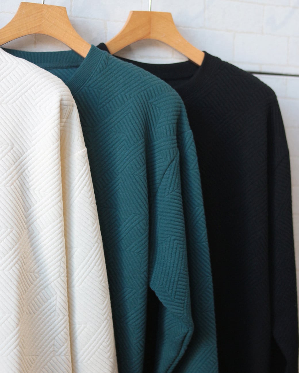繊細で上品な柄が、シンプルなスウェットに深みを与え