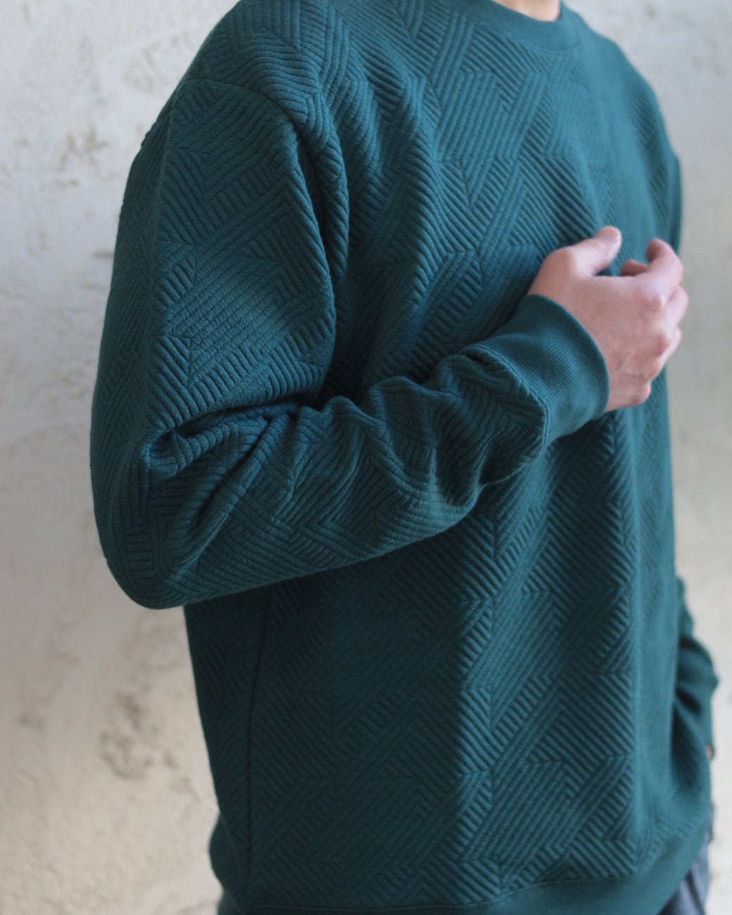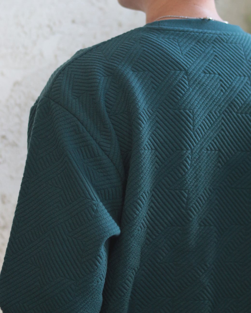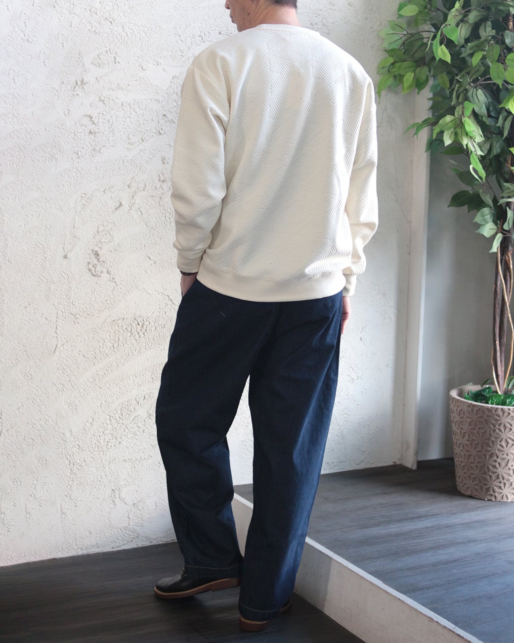 繊細で上品な柄が、シンプルなスウェットに深みを与え