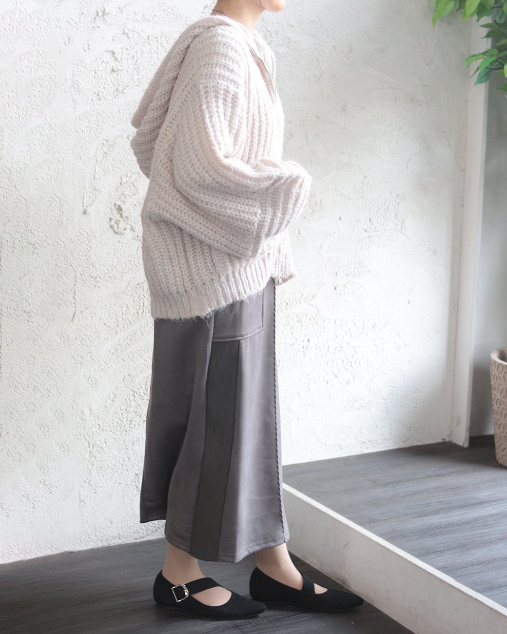 フード フーディー パーカー ジップパーカー アウター 羽織り ニット セーター ボリューム袖 秋 冬