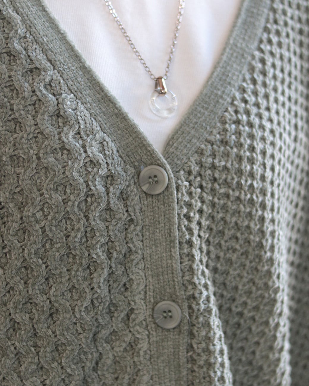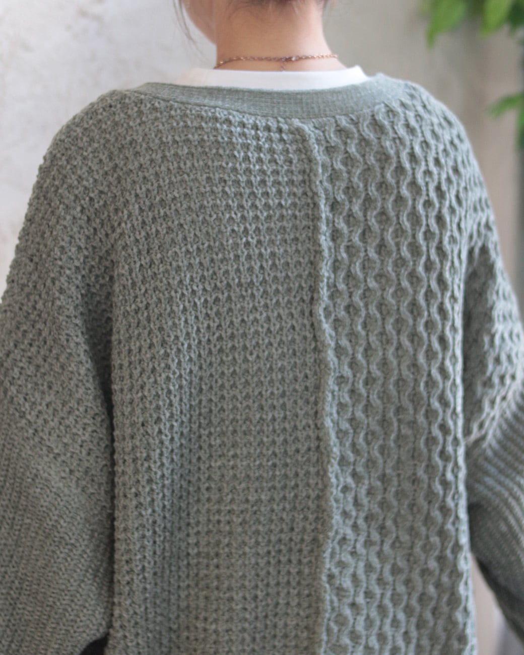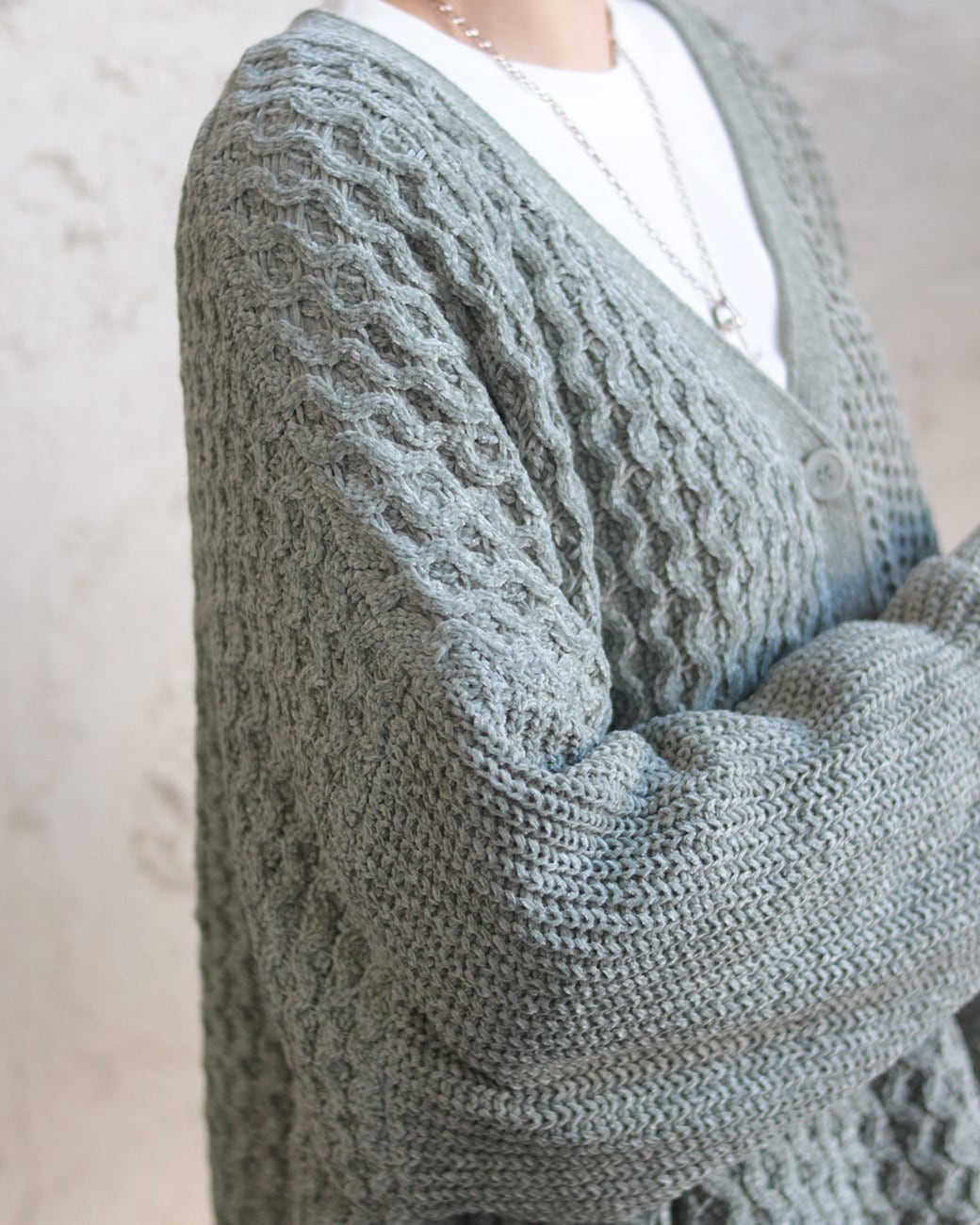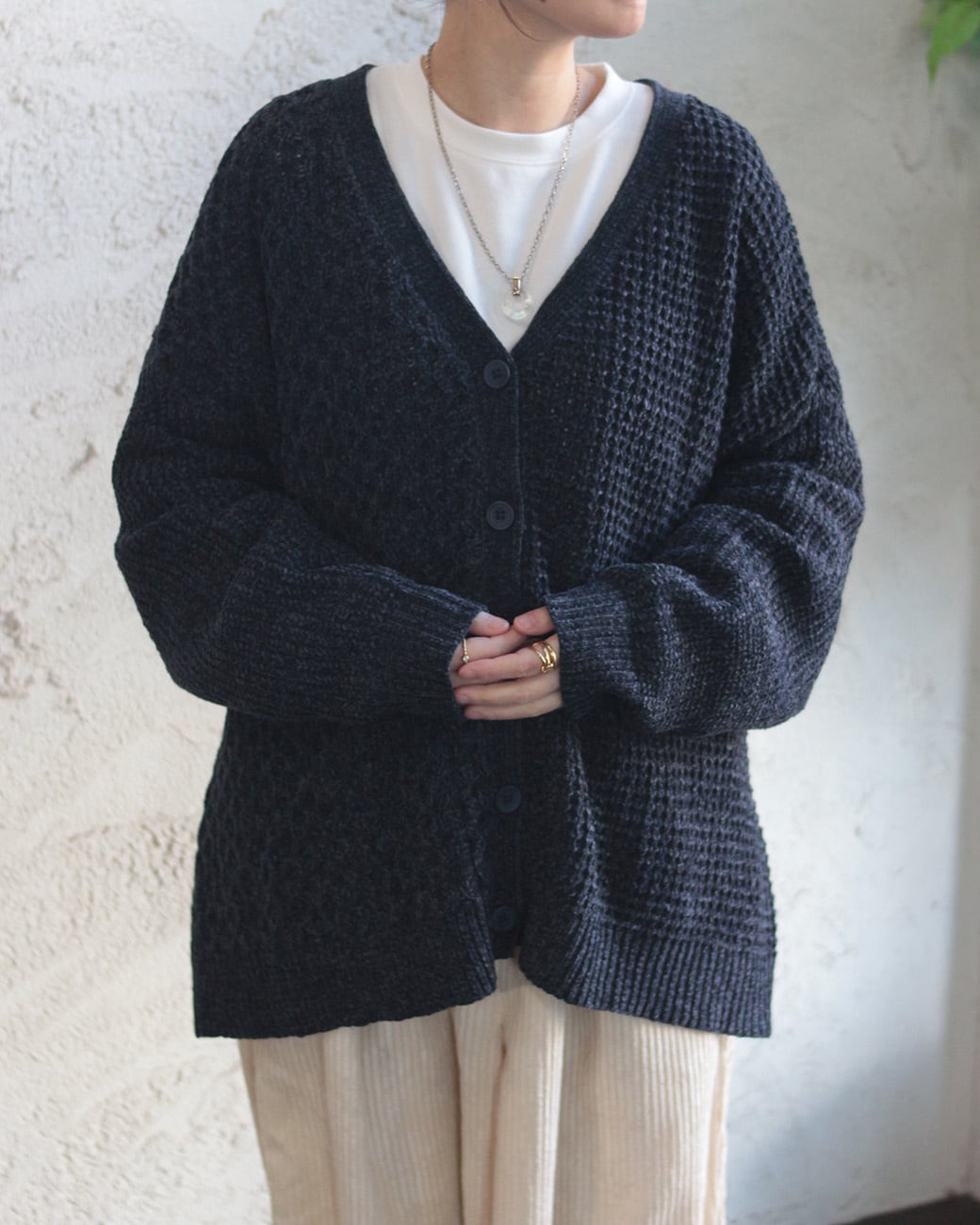 モールニット ブークレ ケーブル編み カーディガン 柄切替 ドロップショルダー ふんわりニット 軽量ニット 秋 冬