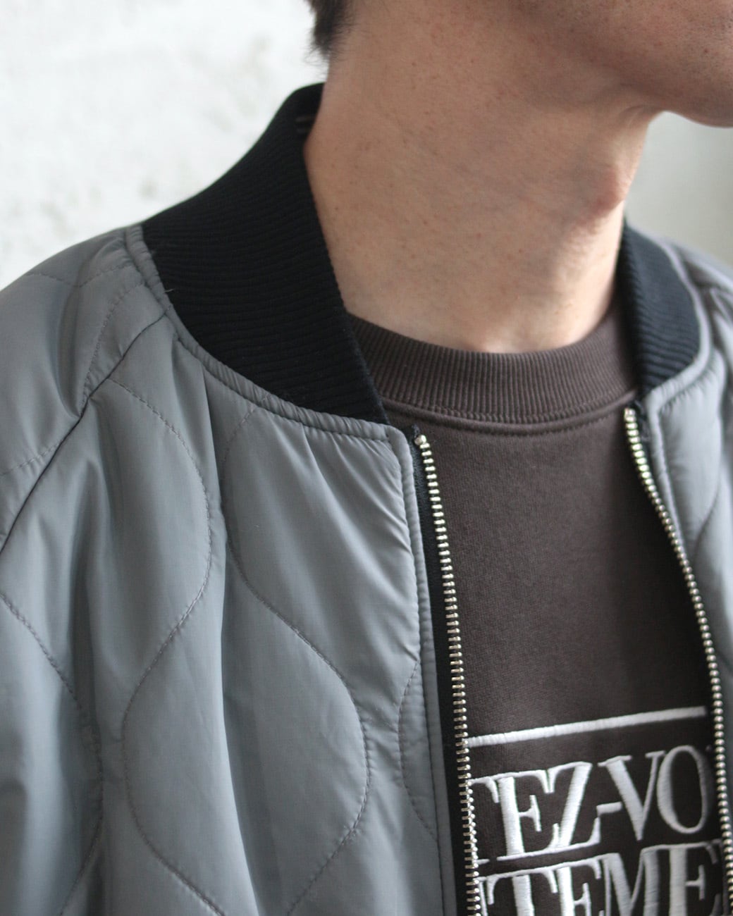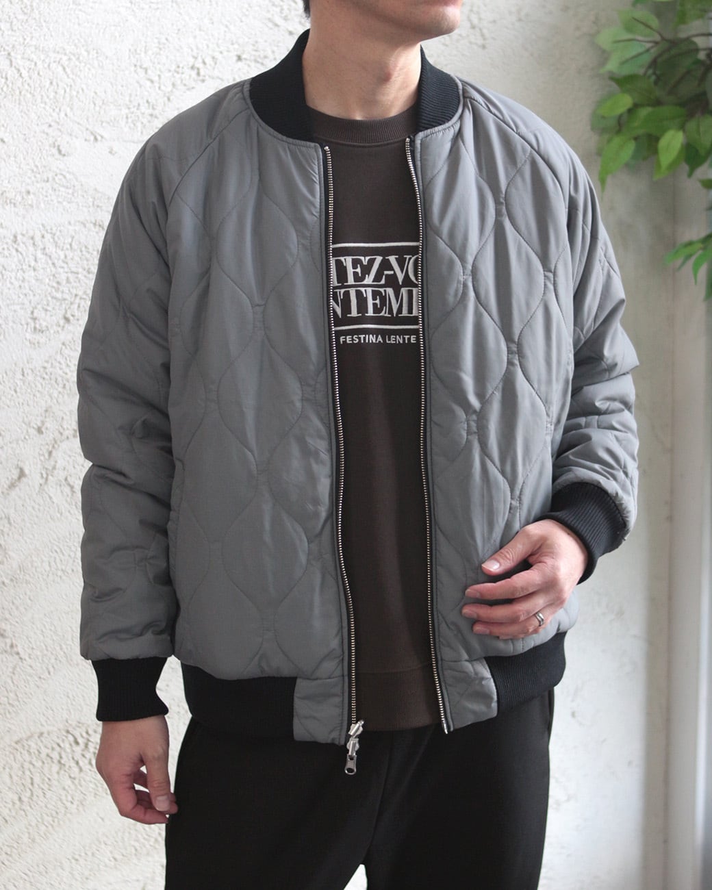 ナイロン素材にウェーブキルティングを施した、ミニマルで温かみのある表情。