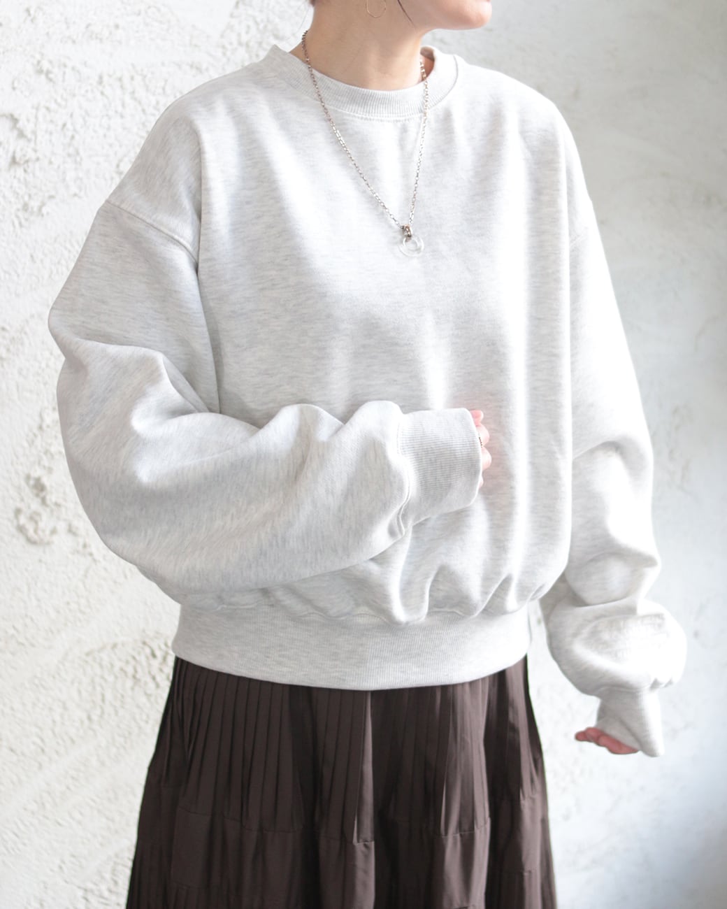 表面は、コットン混のサラッとした肌触りが心地よい裏起毛スウェット。