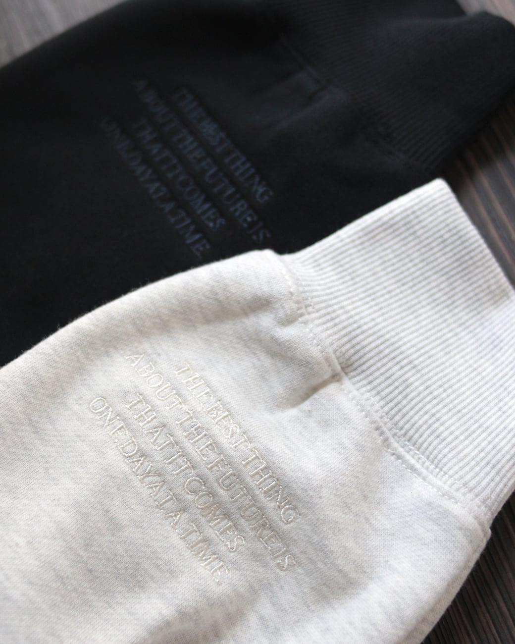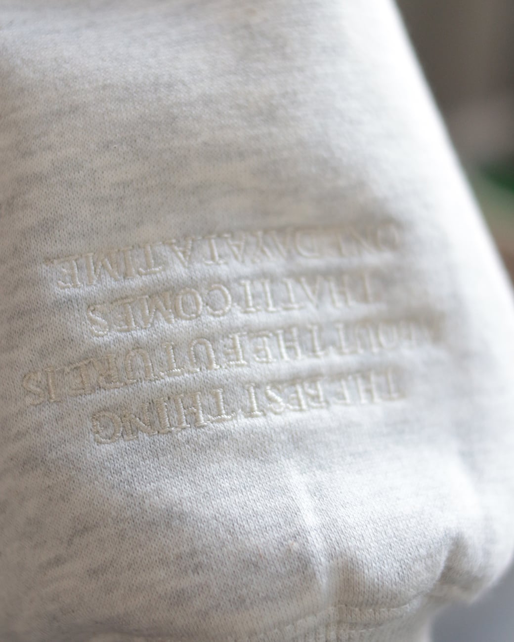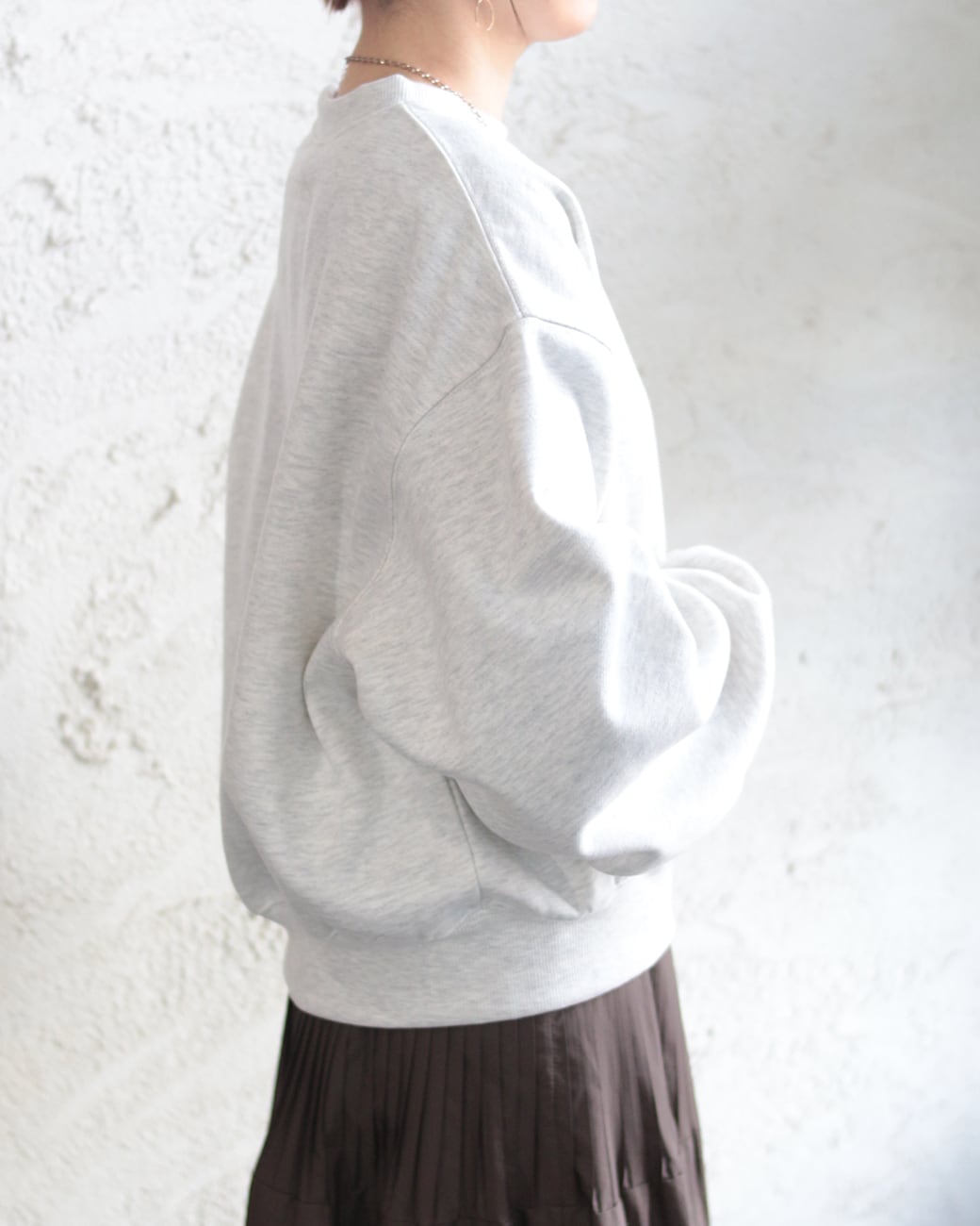 袖口とバックネック下に刺繍ロゴが施された、裏起毛プルオーバー。