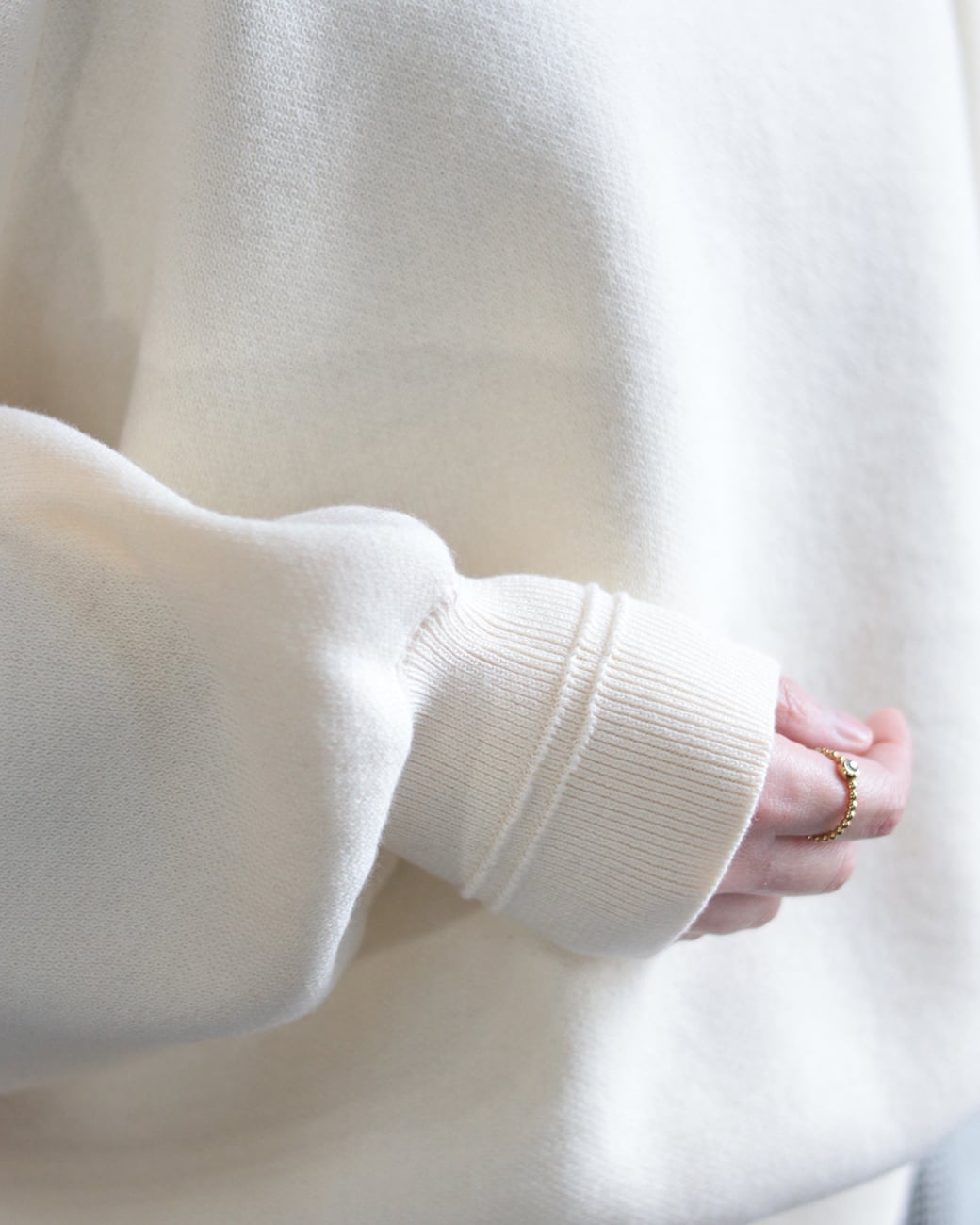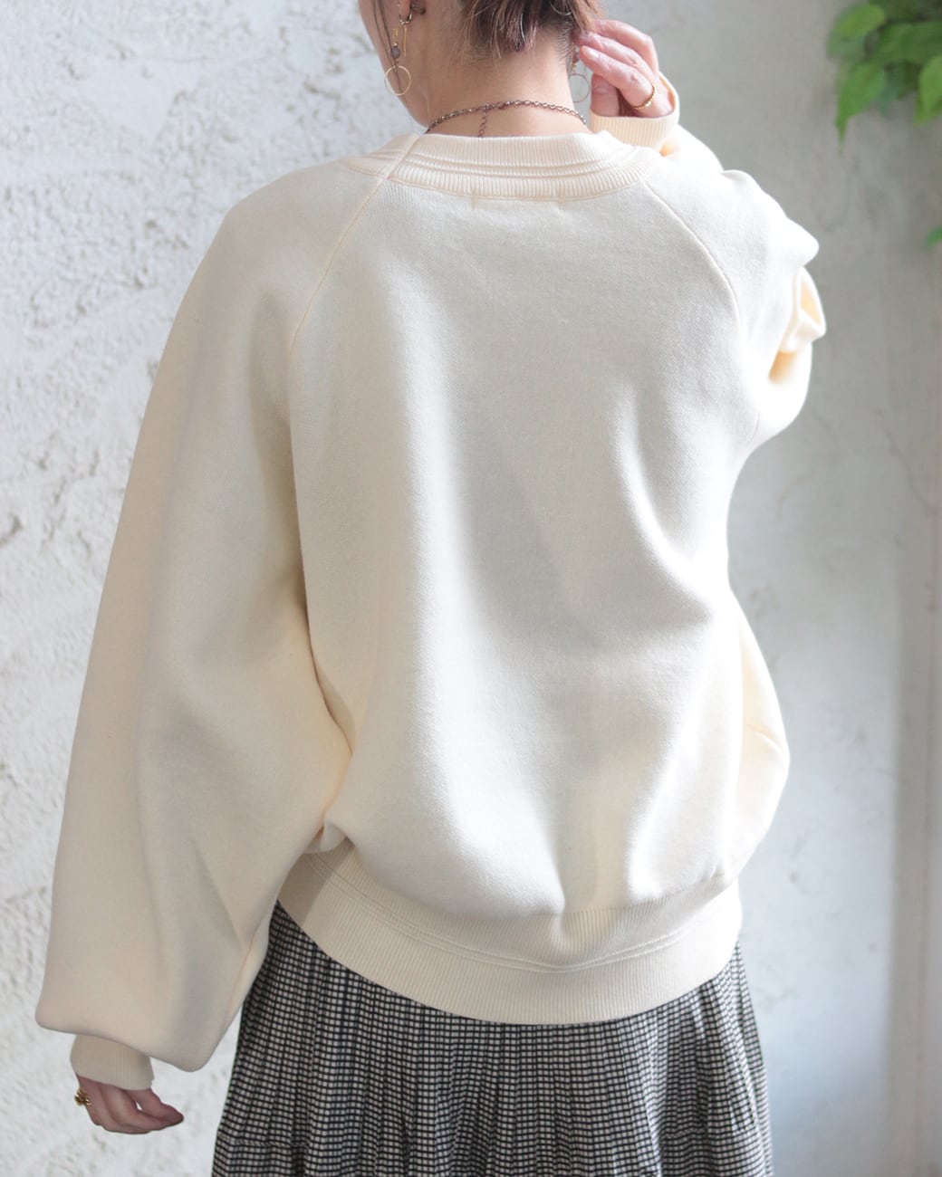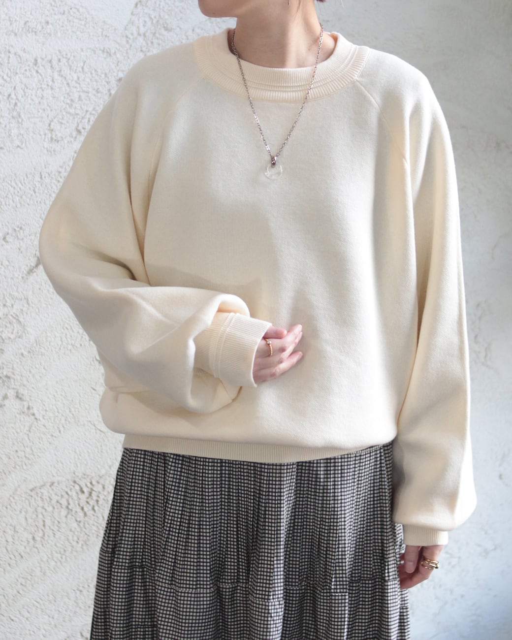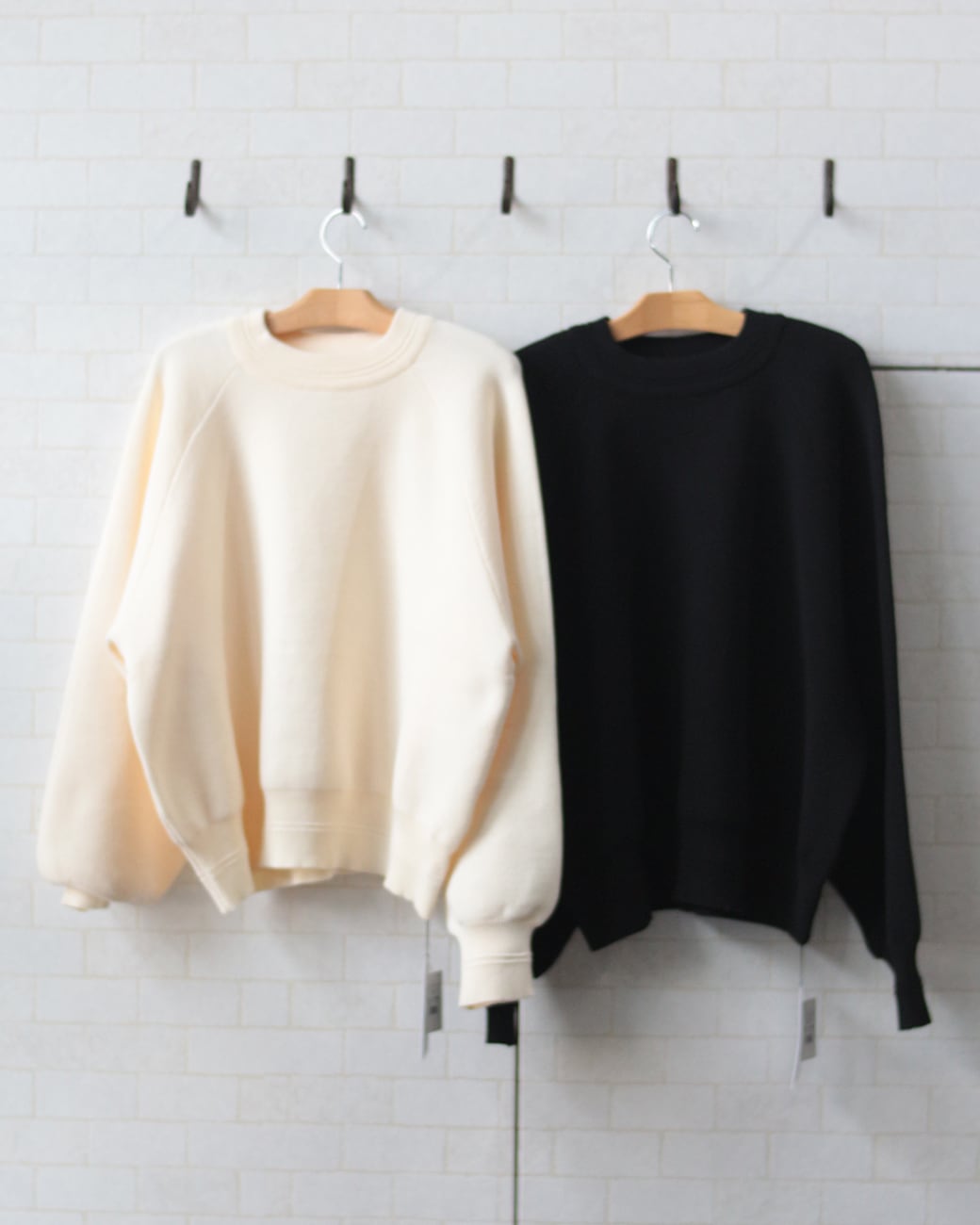 程よく厚みのあるニットで、スウェットライクな見え方が特徴です。