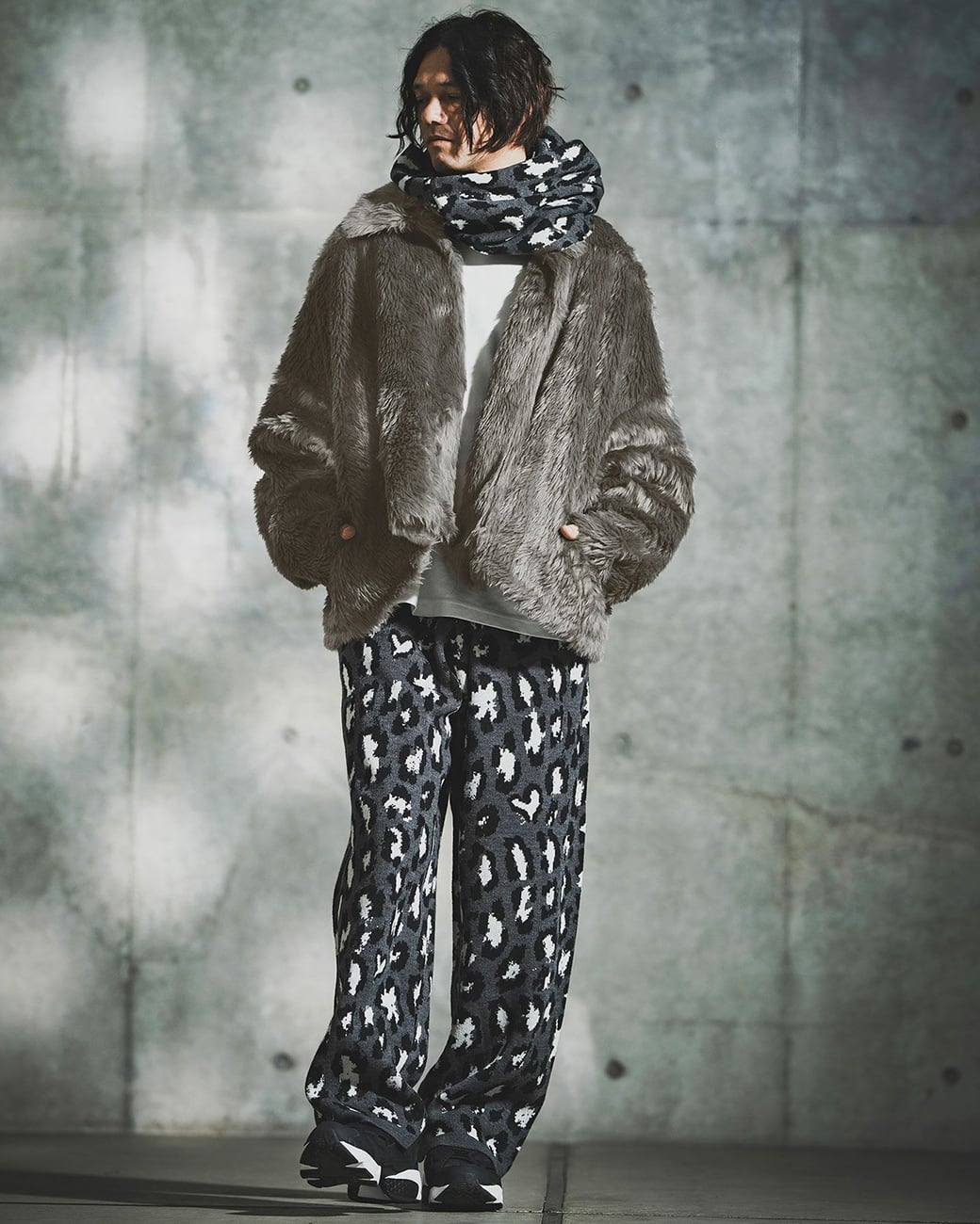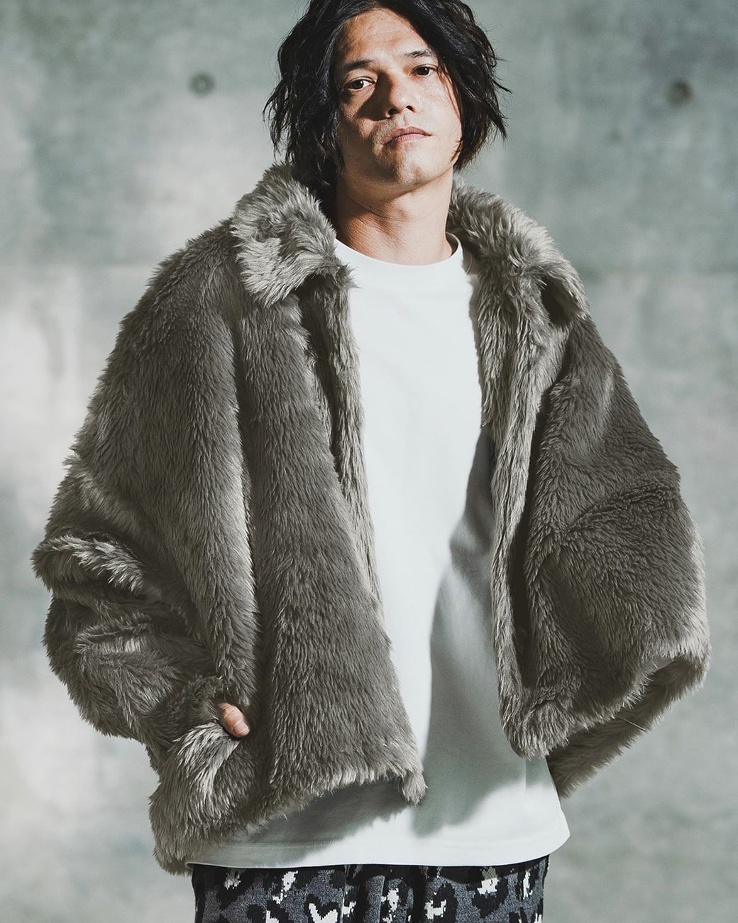フェイクファーを使用した、際立つ存在感のジャケット。