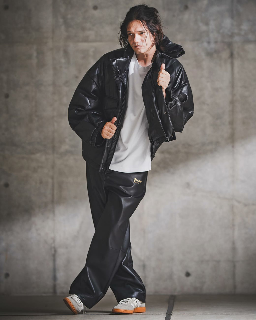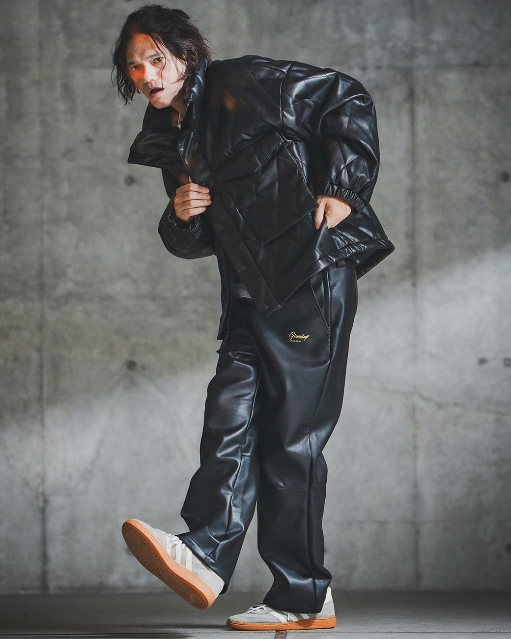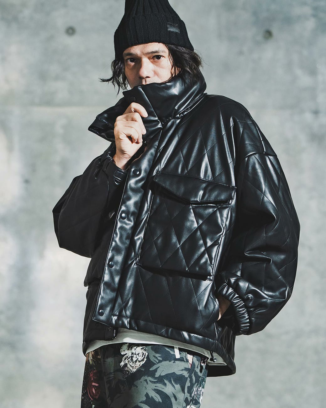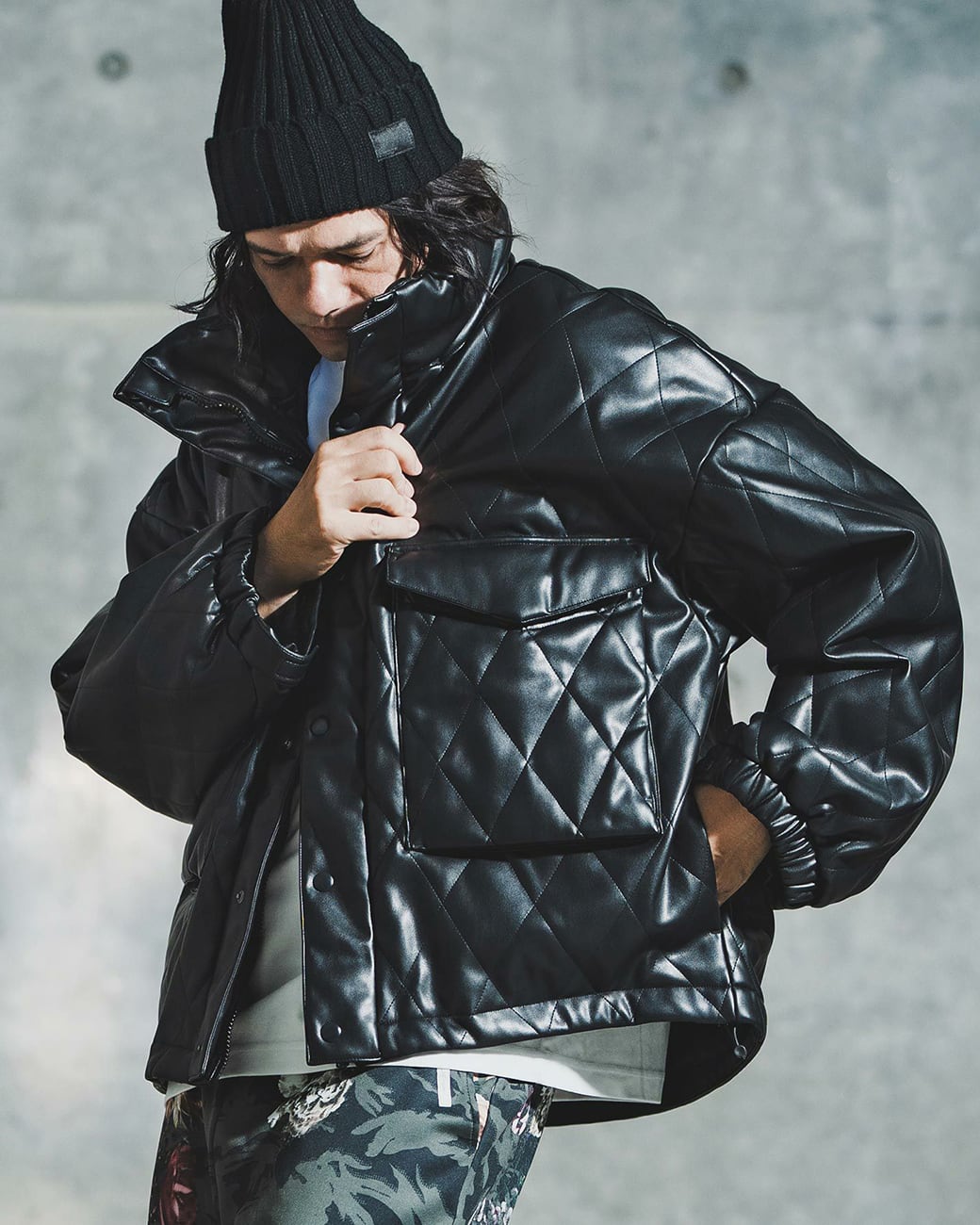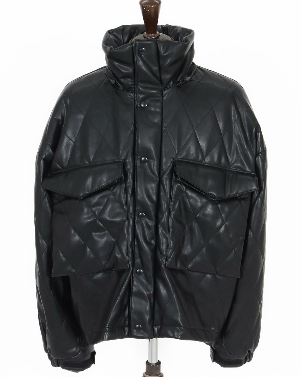 ミリタリー由来のWEPジャケットをベースに、シンセティックレザーとダイヤキルティングで再構築。