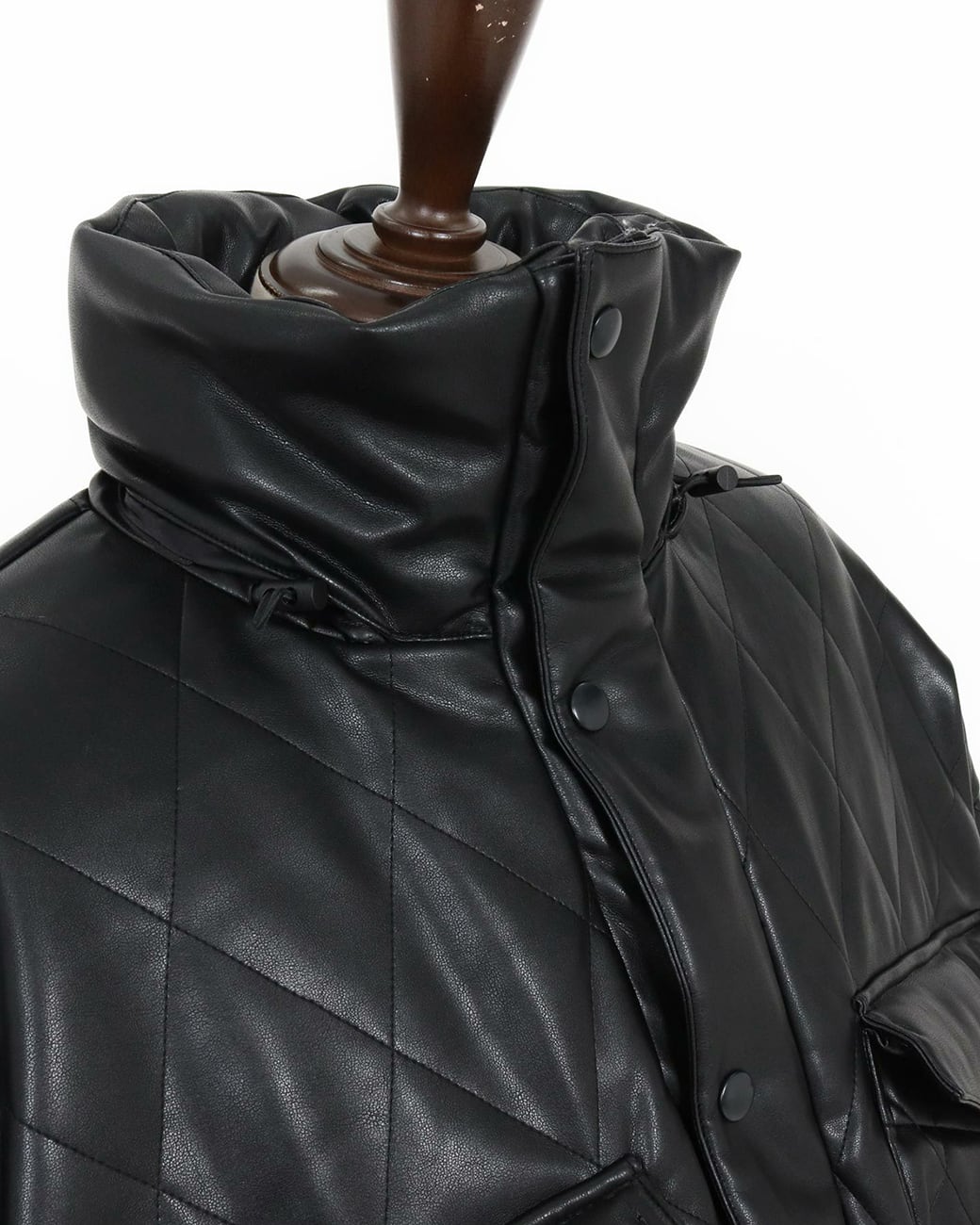 ラム革のような質感を持つシンセティックレザー素材に、中綿入りのダイヤキルティング加工を施したファブリック。