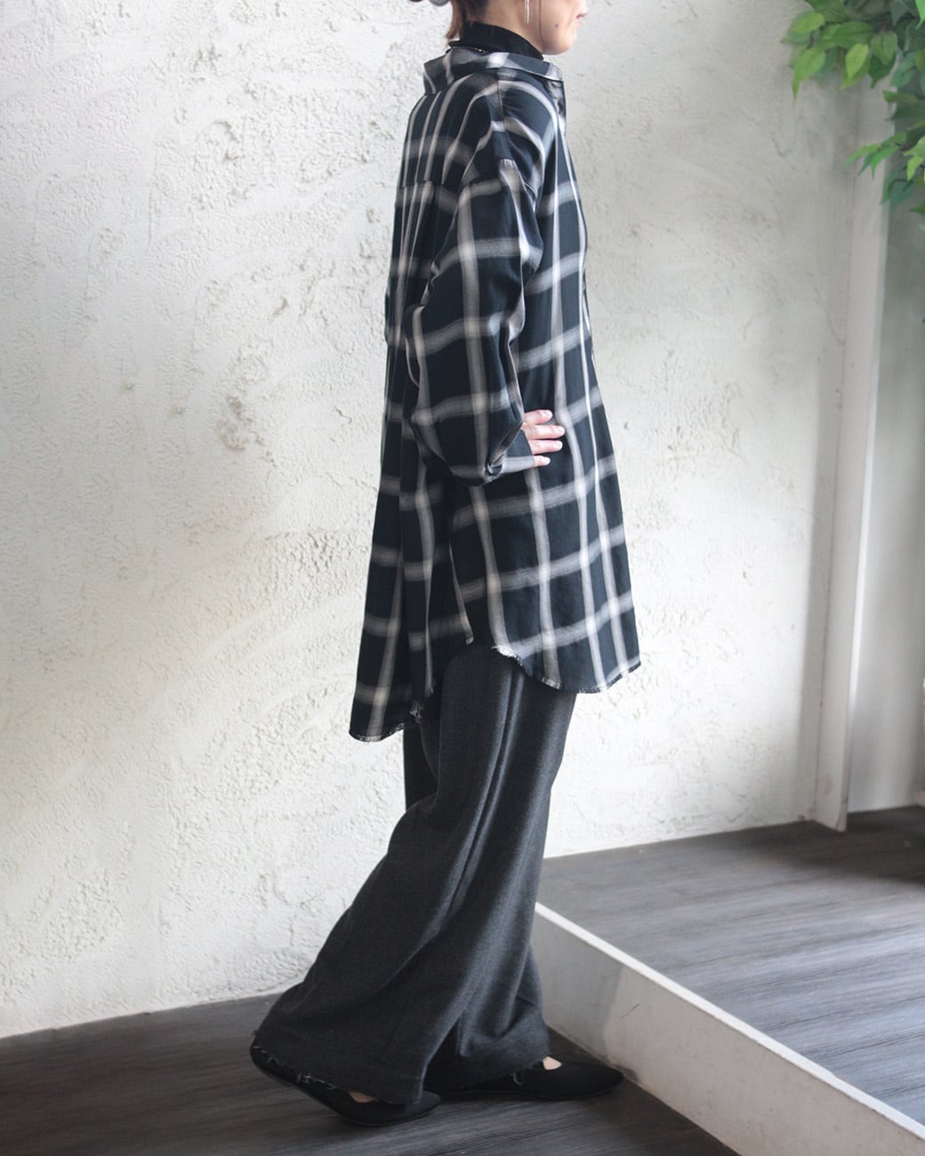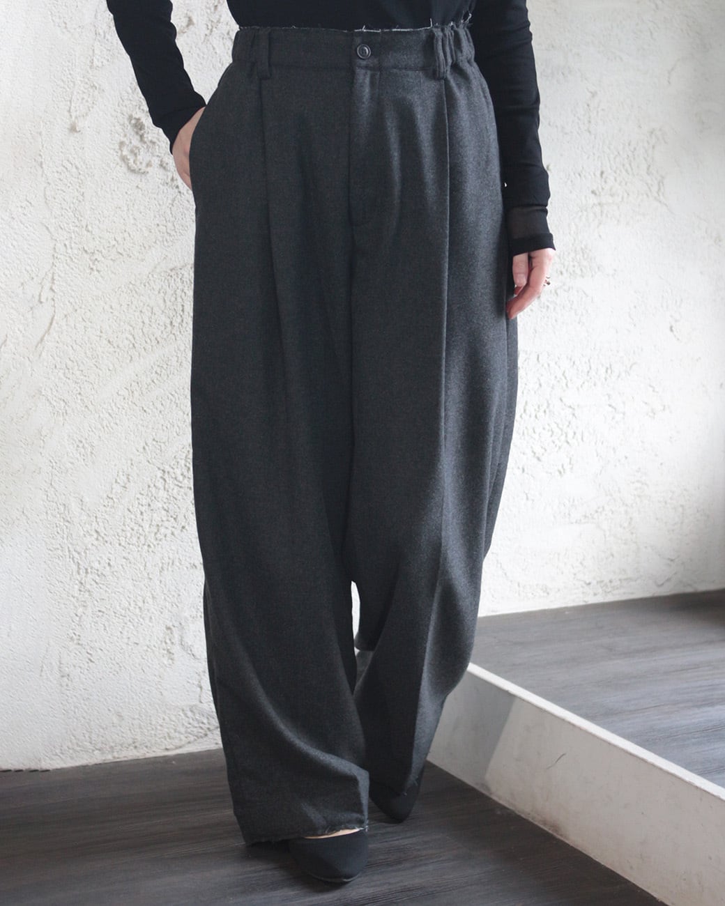 ウエストと裾のカットオフ仕様がポイントのタックパンツ。