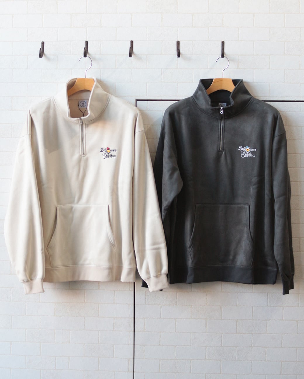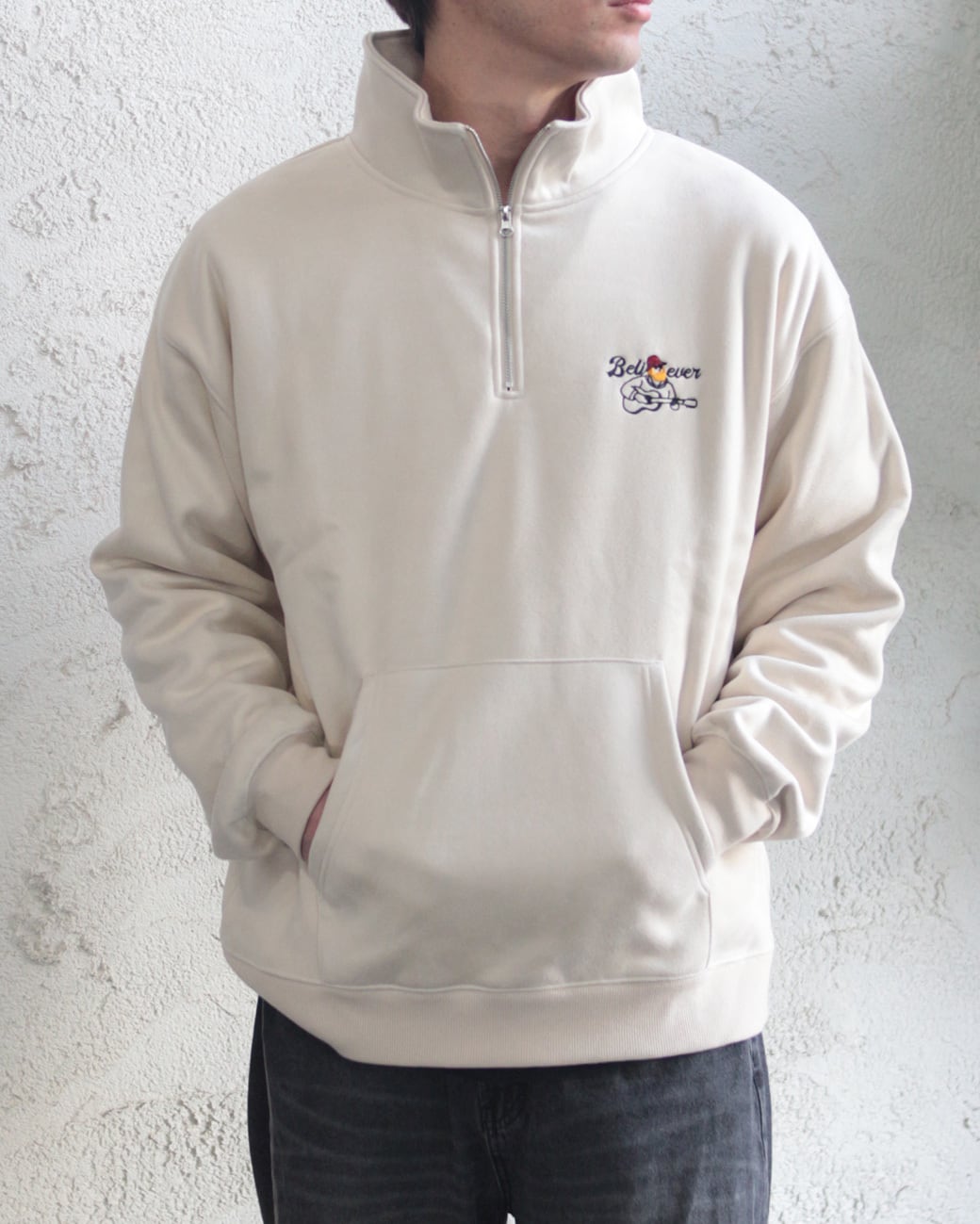 刺繍 ハーフジップ ボンディング スウェード スエード フリース ボア ヒゲ 秋 冬