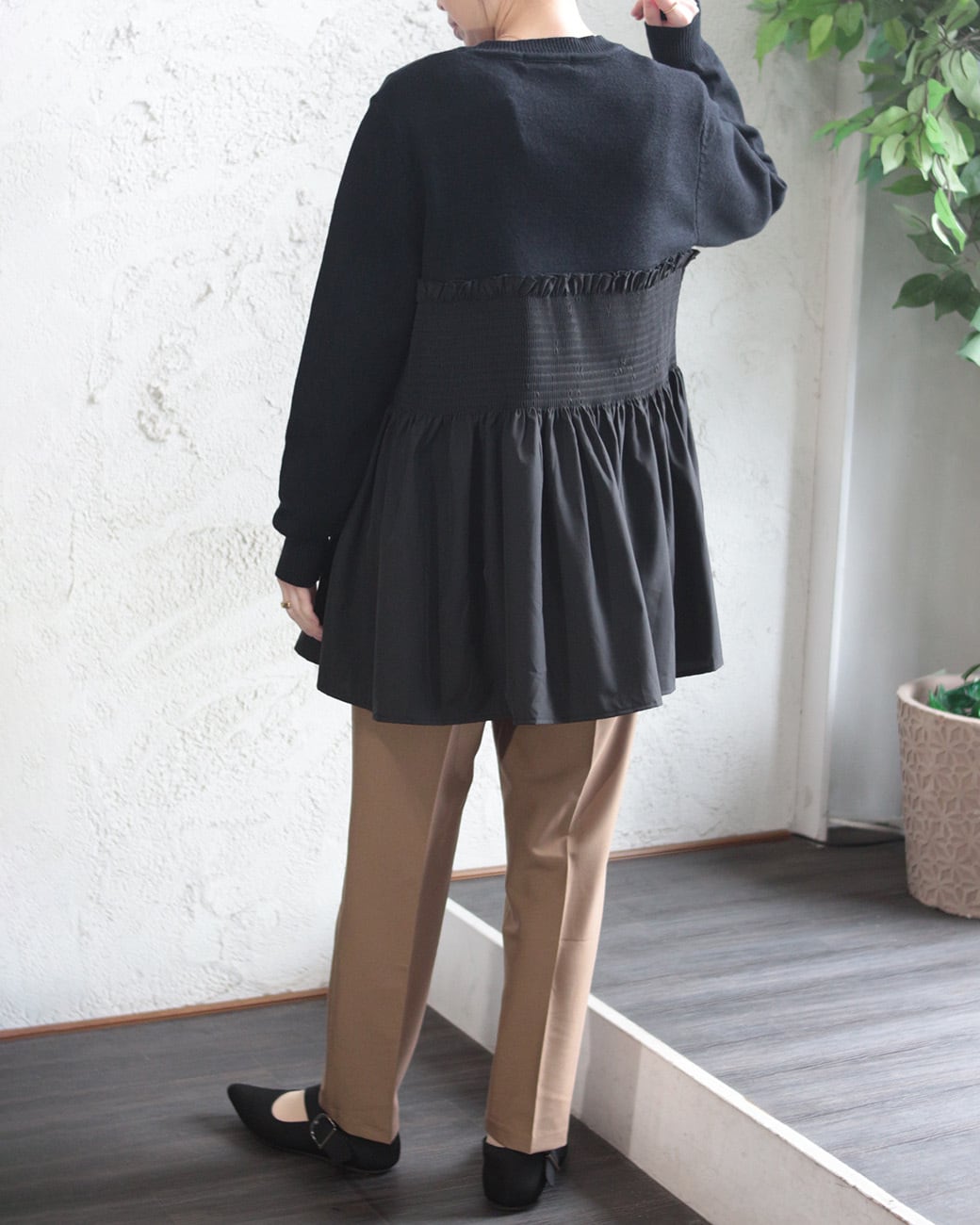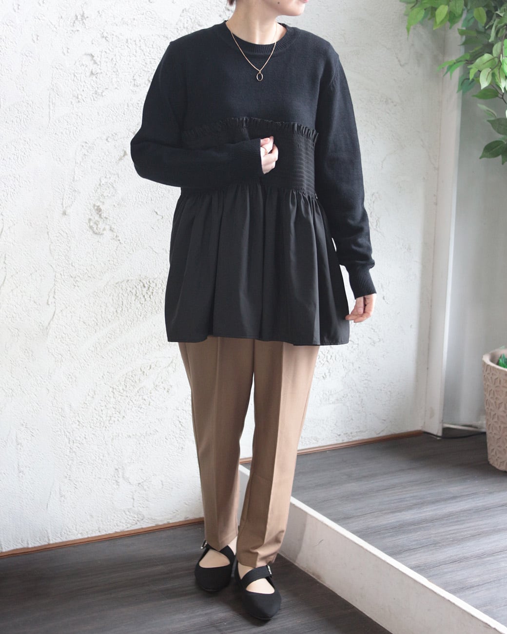 ブラウスを合わせてキレイめに、スウェットやロンTでキレイめカジュアルにと着回しがききやすいパンツです!