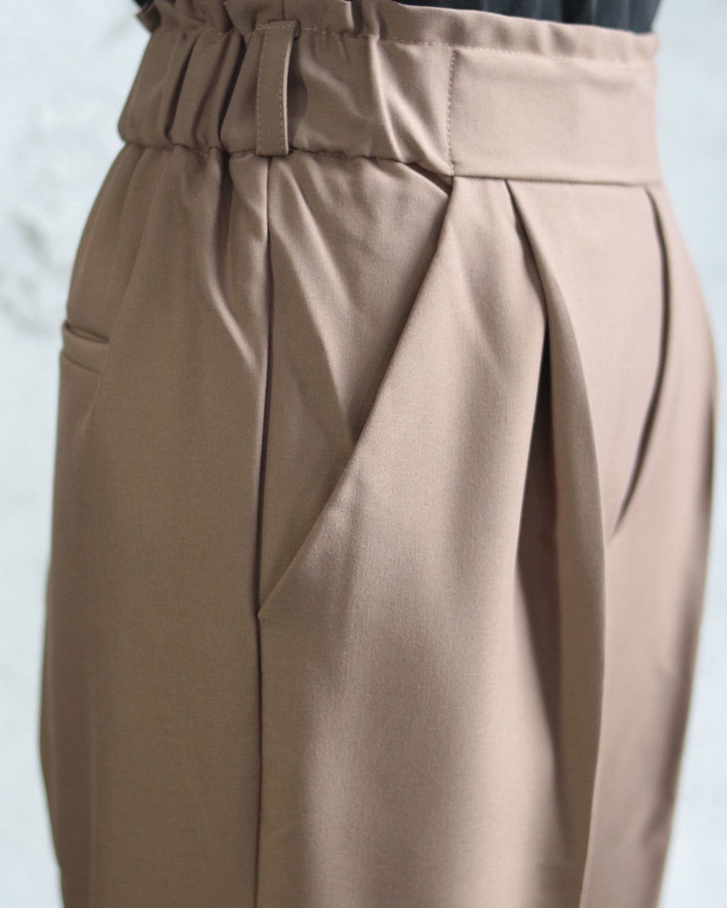 楽ちんゴムウエストながら、ベルト風デザインでスタイルアップ。